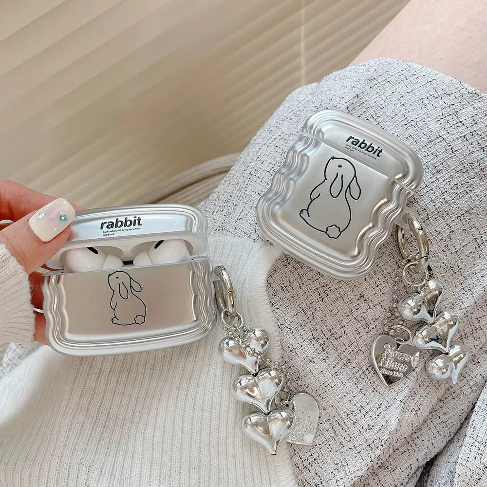 Plating Silver Rabbit Bunny Earphone Case for AirPods Pro 2 Heart Pendant Cover for Airpods 2/3 Bluetooth Headset Case Keychain