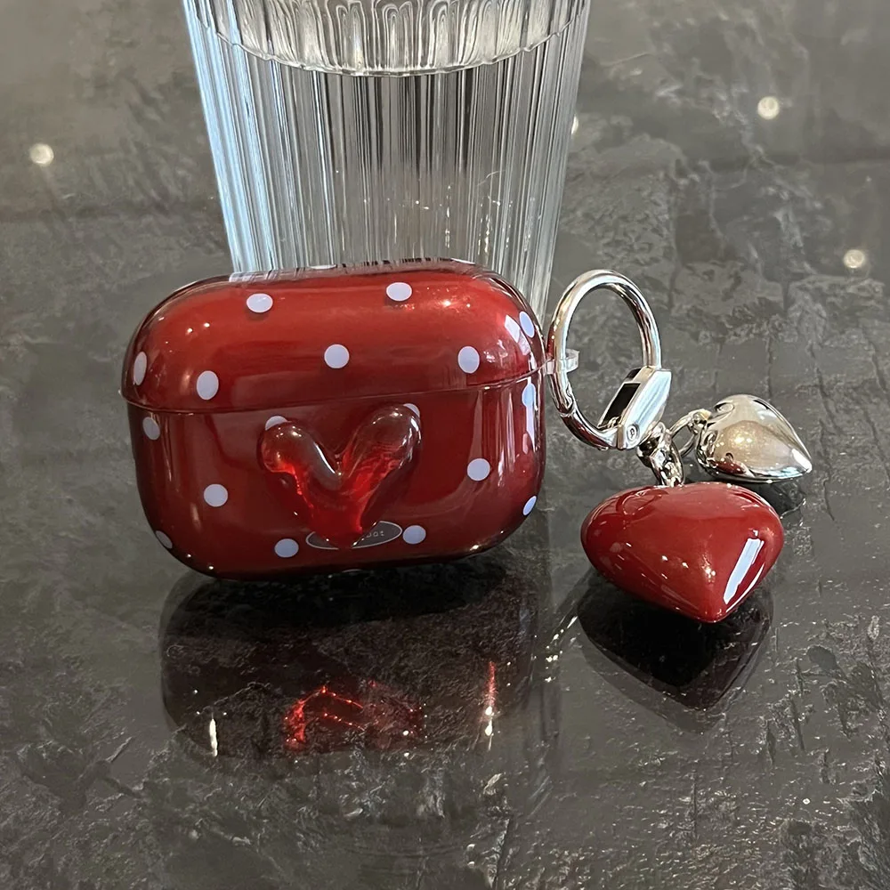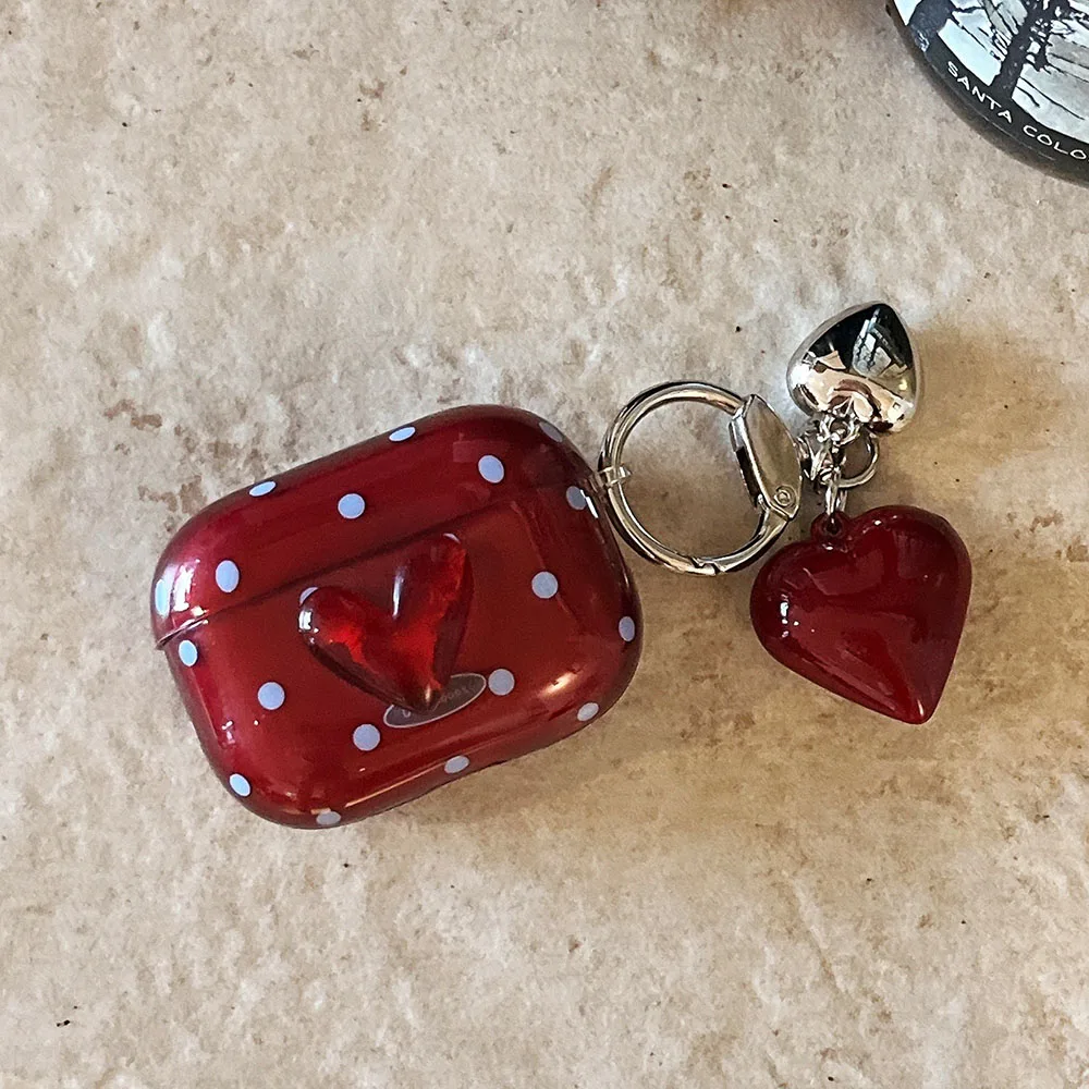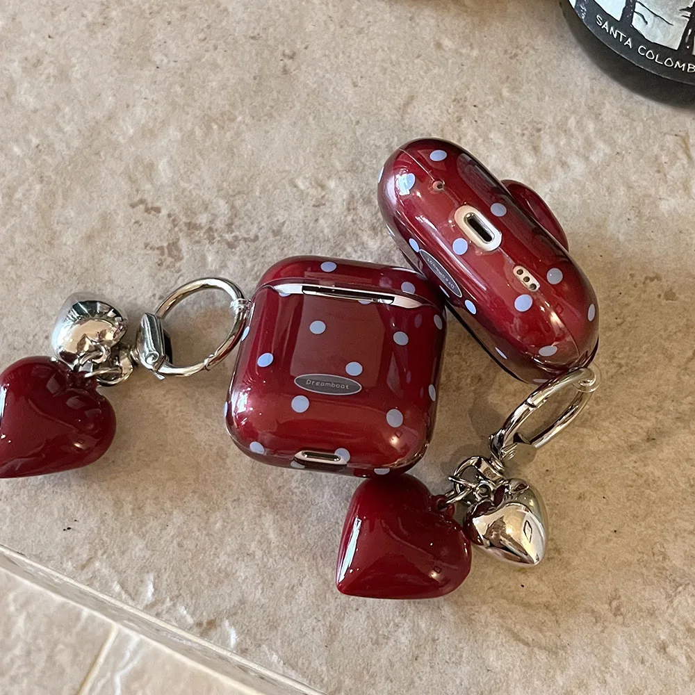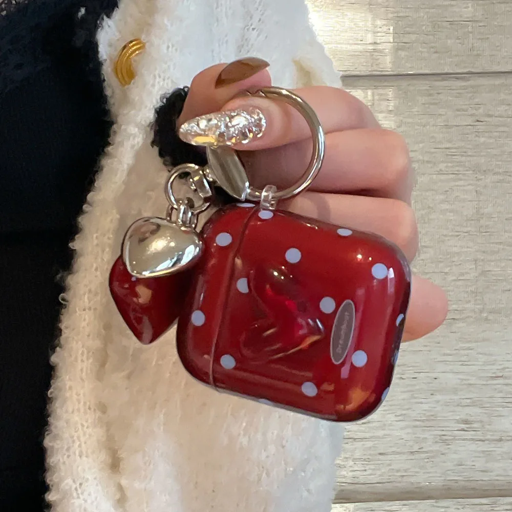 Polka Dot Heart Protecitve Case For AirPods 4 Pro 2 Earphone Cover For AirPods 1 2 3 4th Generation Case with Keychain Pendant