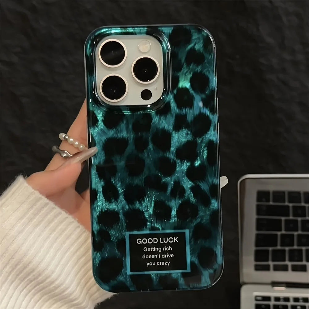 Retro Laser Cute Leopard Print Pattern Phone Case for iPhone 11 12 13 14 15 16 Pro Max XS XR X 7 8 Plus Shockproof Bumper Cover