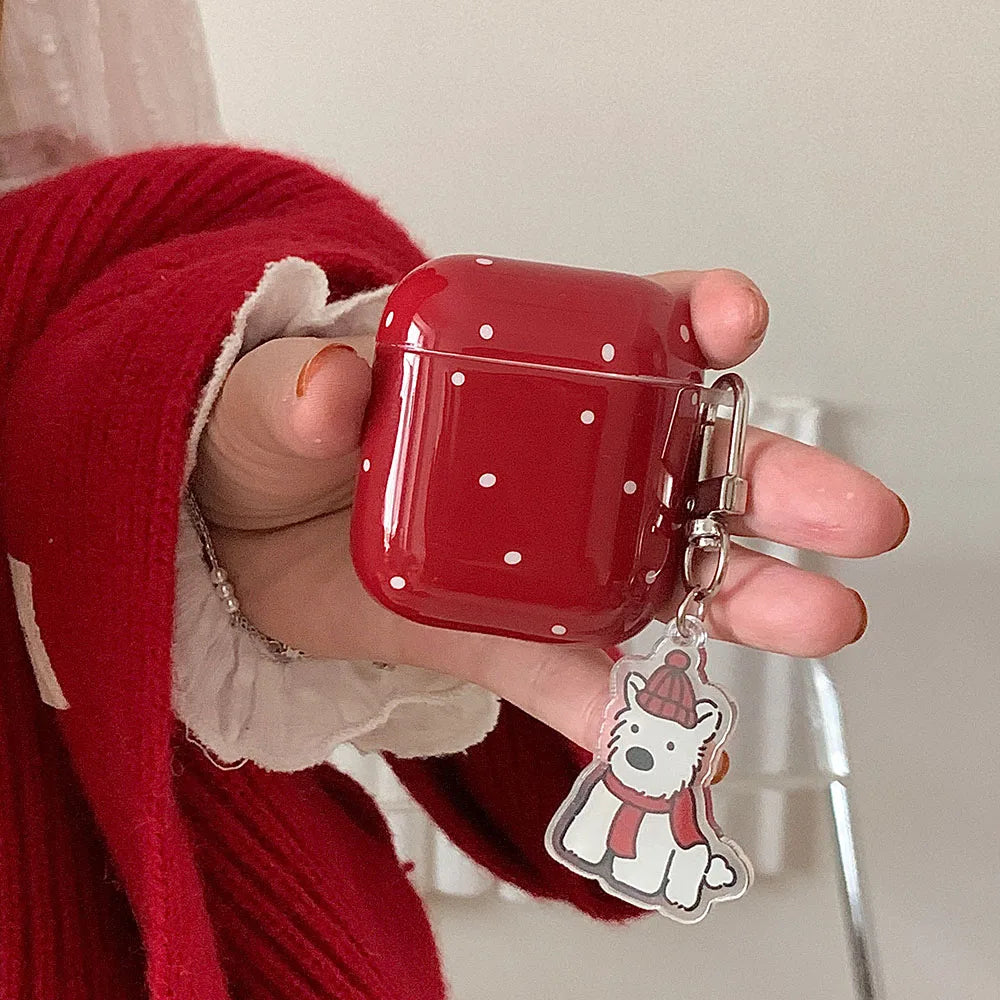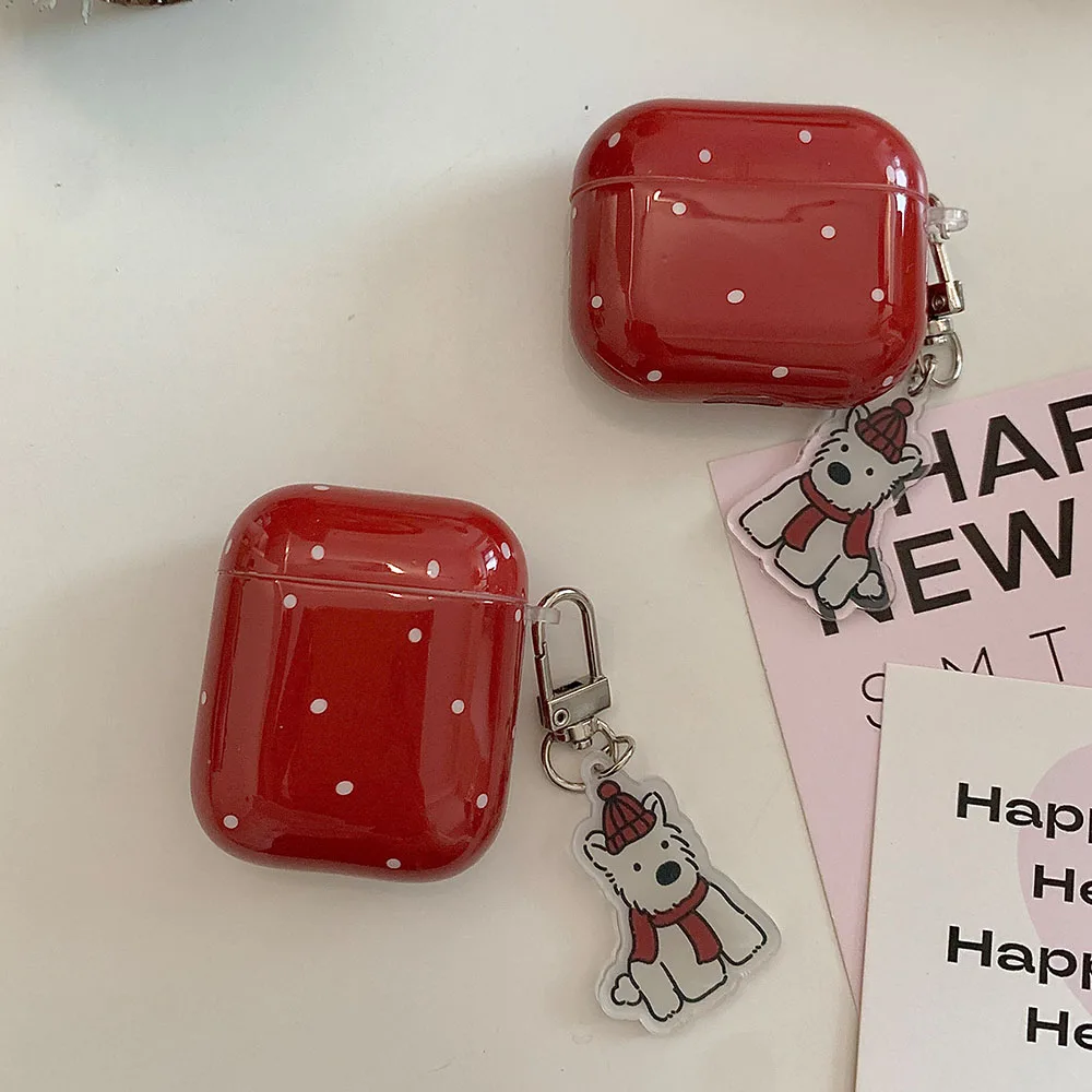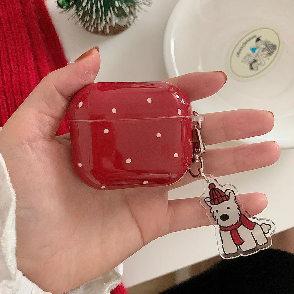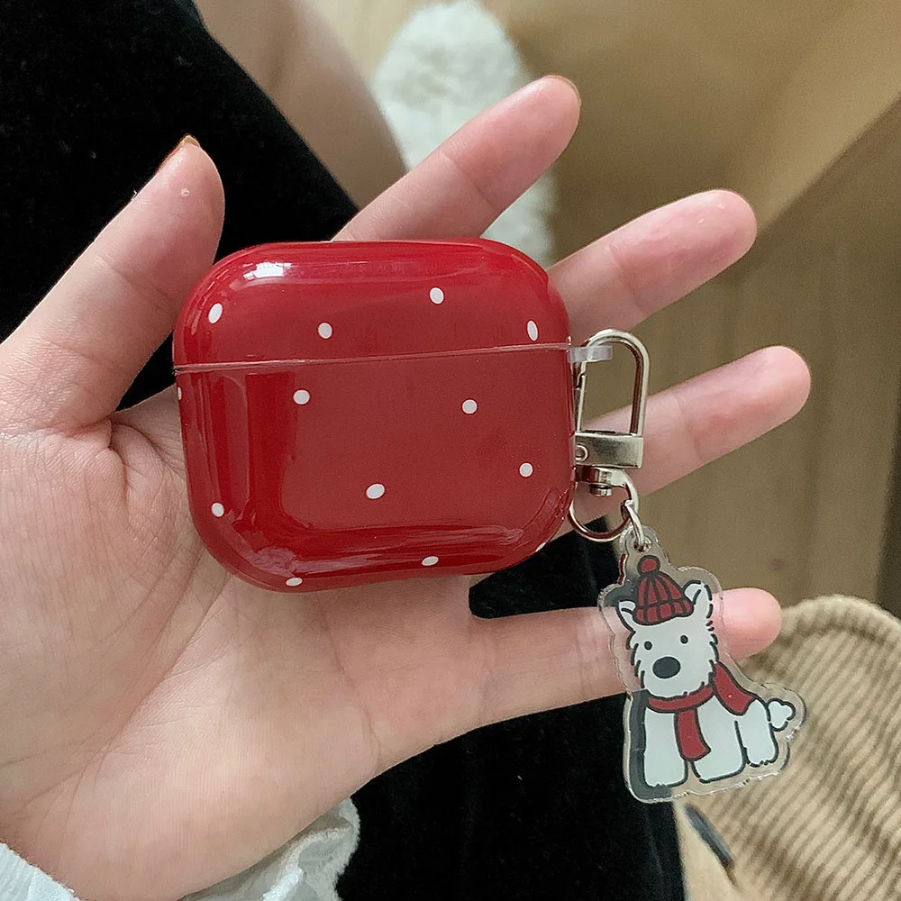 Retro Red Shockproof Protective Case For Apple AirPods 1 2 3 Pro 2nd Wireless Bluetooth Earphone Cover Cartoon Cute Dog Pendant