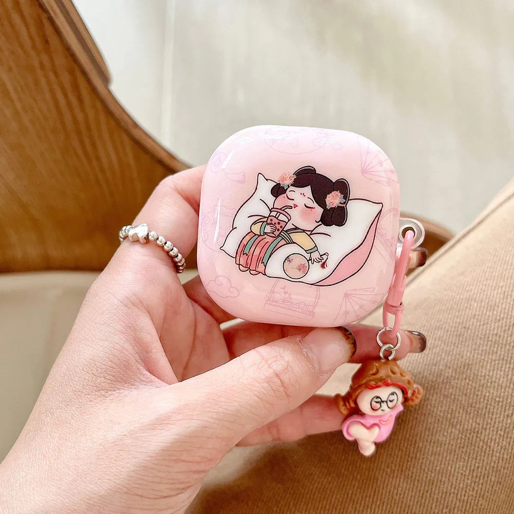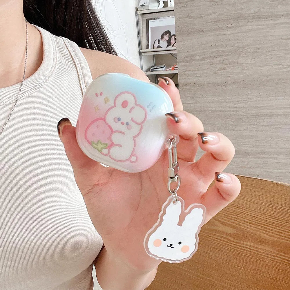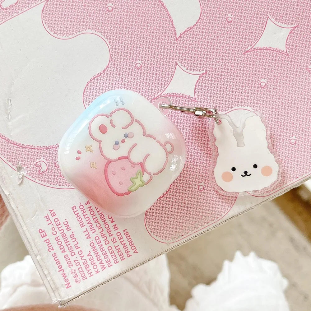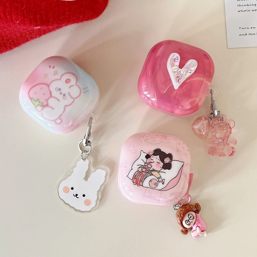 Rose Red Marble Pattern 3D Love Heart Cute Bear Pendant Earphone Accessories Case For Galaxy Buds Pro 2 Live Protection Cover