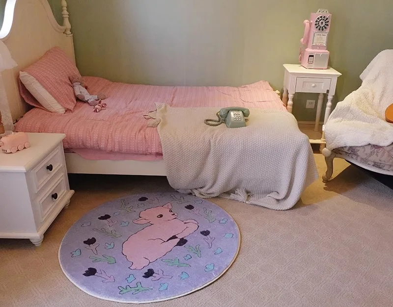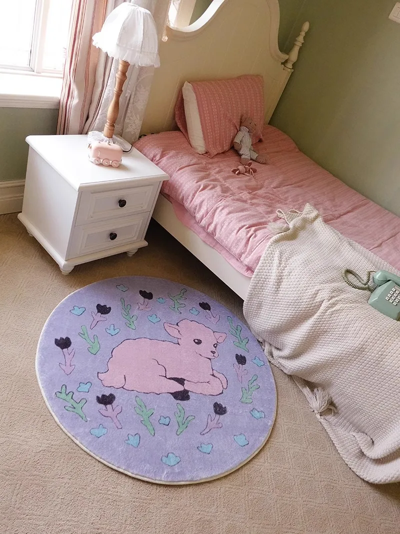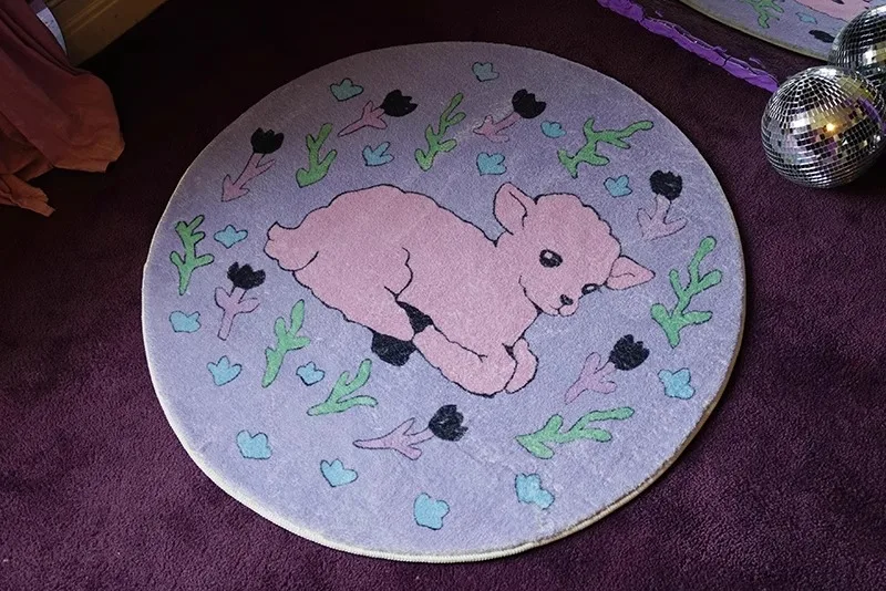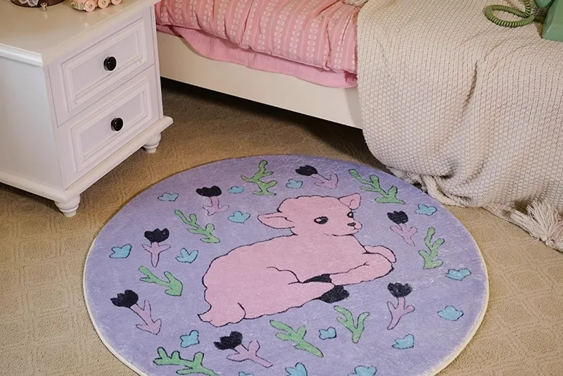 Round Living Room Carpet Purple Little Sheep Pattern Bedside Bedroom Rug Fashionable Ins Style Plush Sofa Coffee Table Mat Tapis