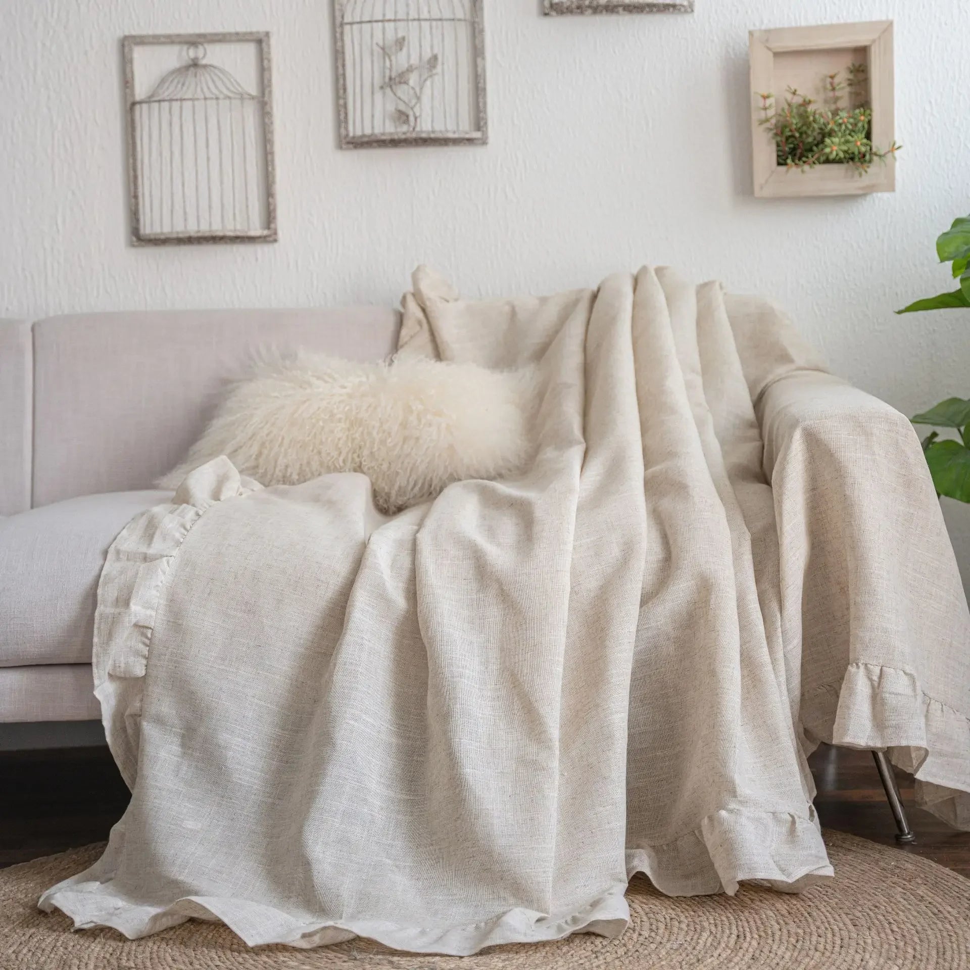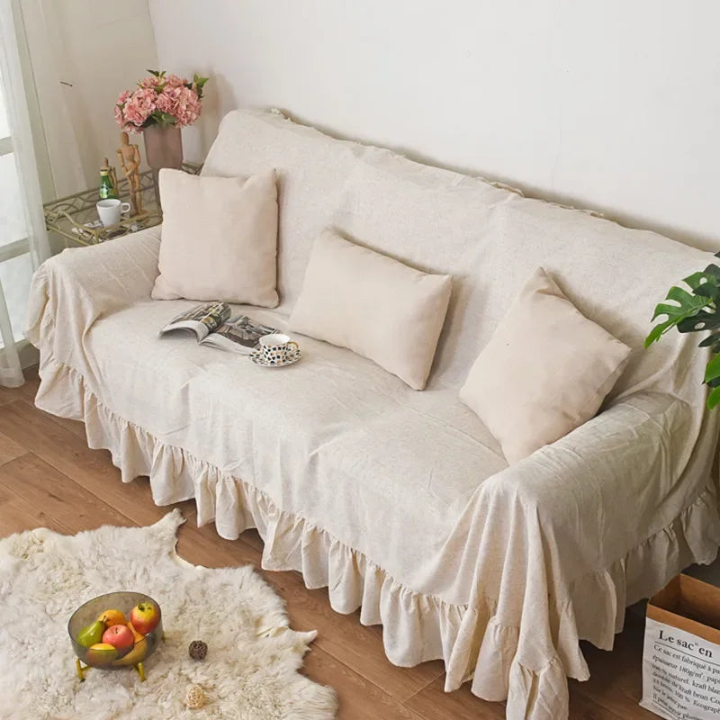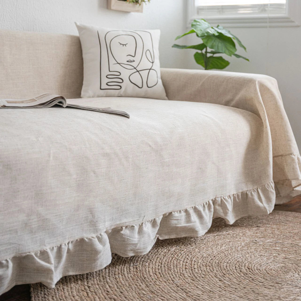 Ruffles Sofa Towel Multi-functional Cover Polyester Hemp Printing Pastoral Pleat Thick Plain Retro Couch Cover Home Decorate
