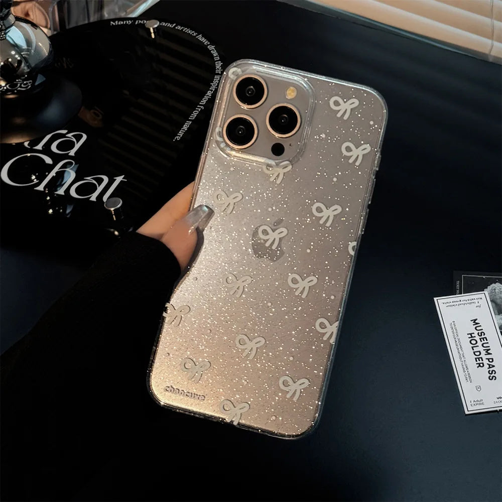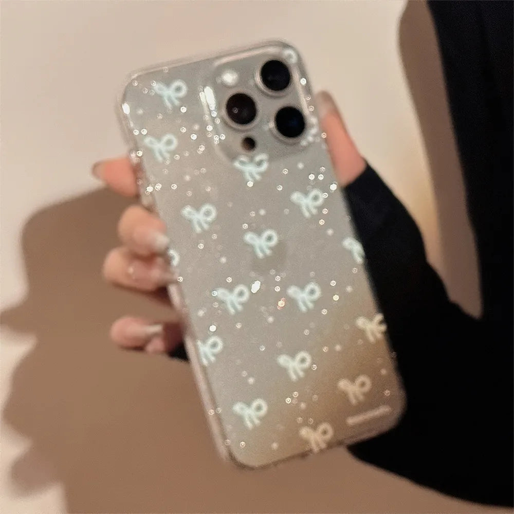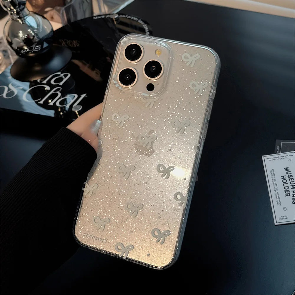 Shiny blue bowknot soft phone case for iphone 15promax 13 11 15 13pro 15pro 12 14promax 12pro 14 pro max transparent fundas capa
