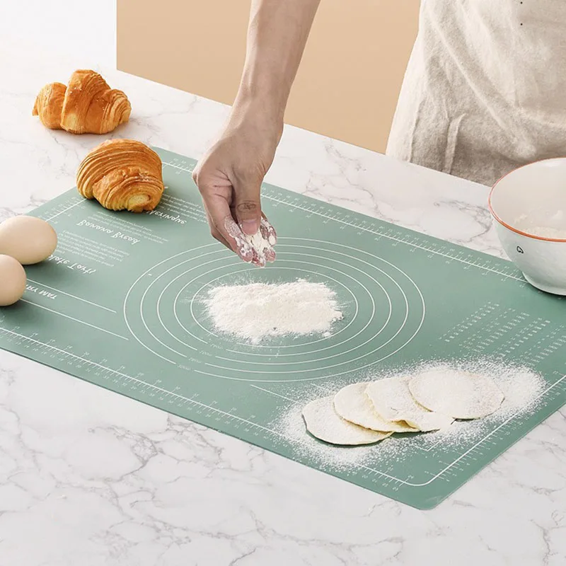 Silicone Measuring Kneading Pad Set Household Food Grade Rolling Pin Dough Pad Large Thick Non-slip Non-stick Bottom Baking Tool