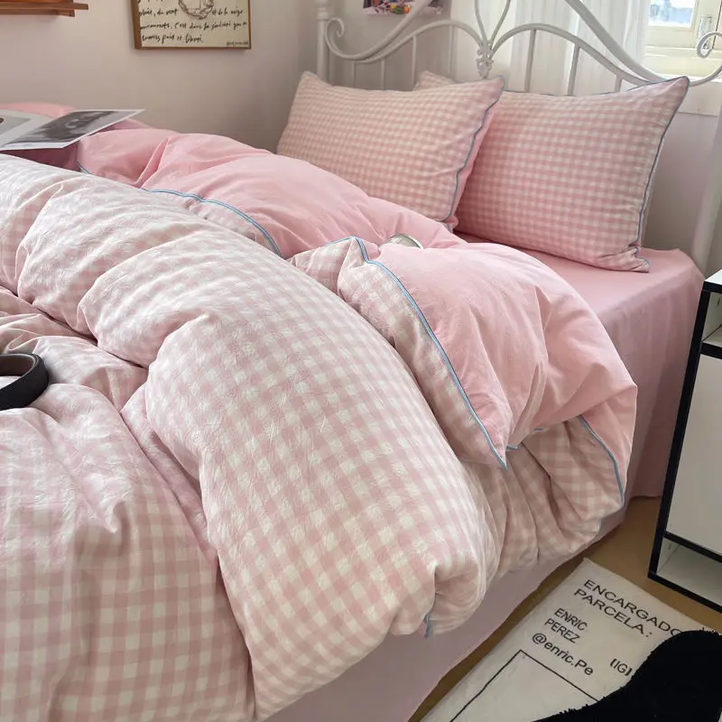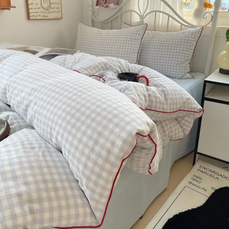 Simple Striped Bedding Set Washed Cotton Duvet Cover Sheet Pillowcase Queen King Size Boys Adults Bed Linens