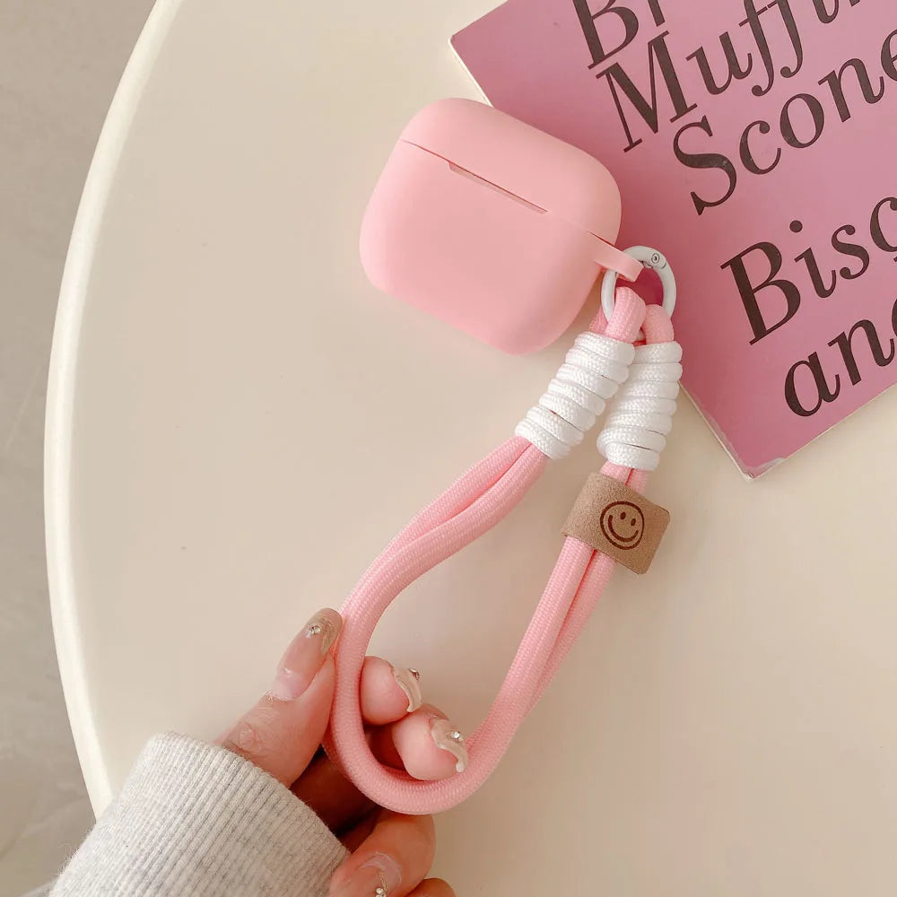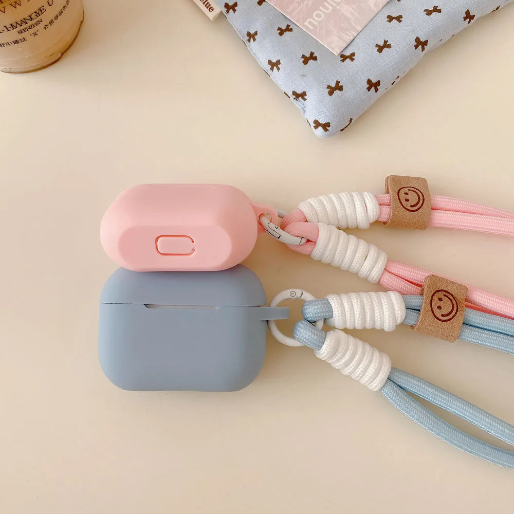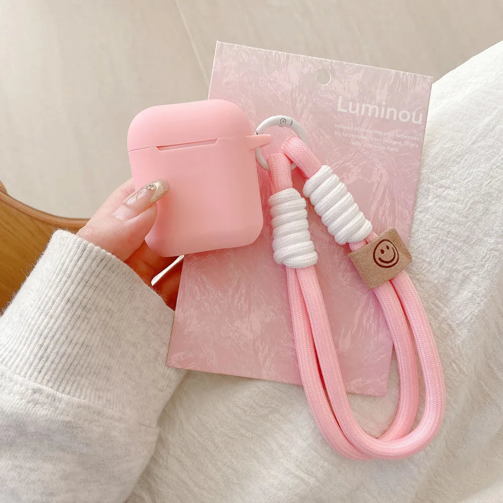 Simple Style Round Soft Liquid Silicone Cover For AirPods 1 2 3 4 Pro Pro2 Earphone Case Anti-Loss Lanyard Wrist Strap Protector