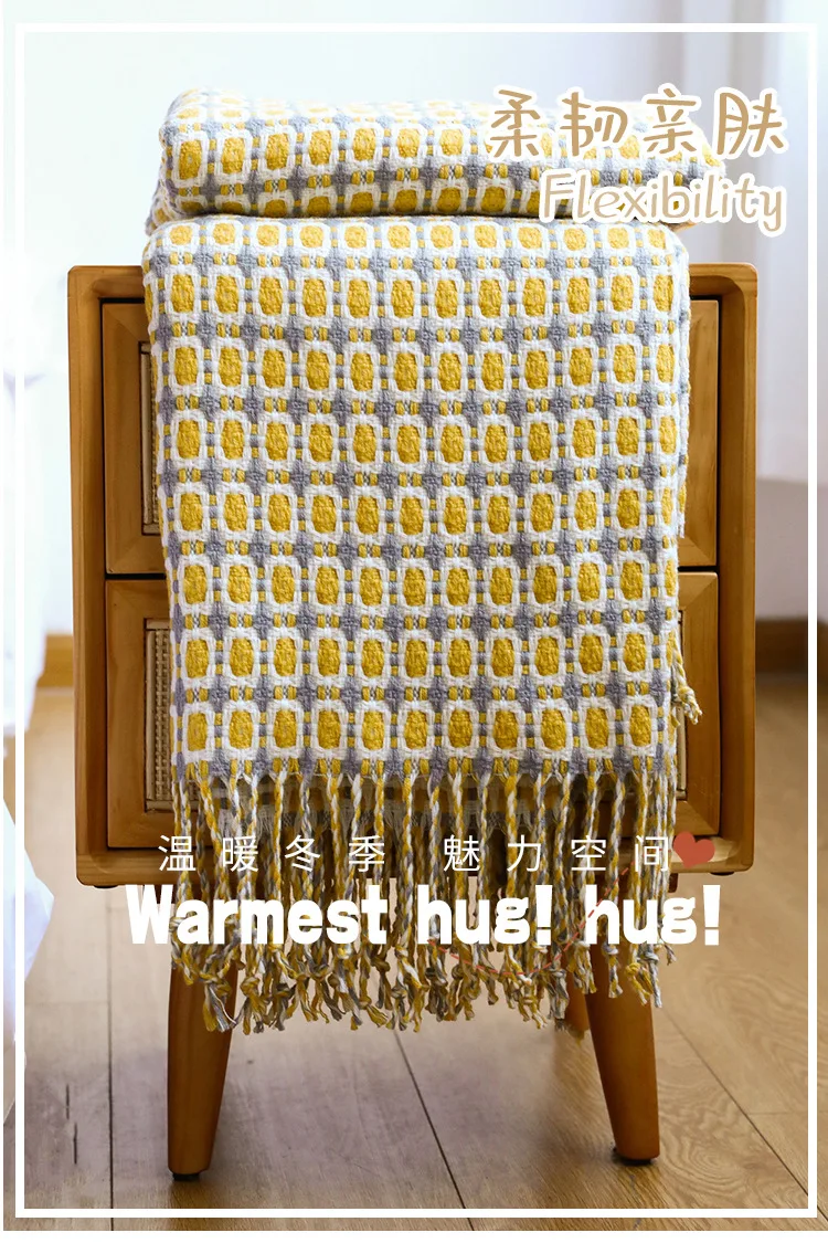 Textile City Nordic Simplicity Knitted Checkered Throw Blanket Plaid Navy Blue Tassels Sofa Sheet for Spring Autumn 130x240cm