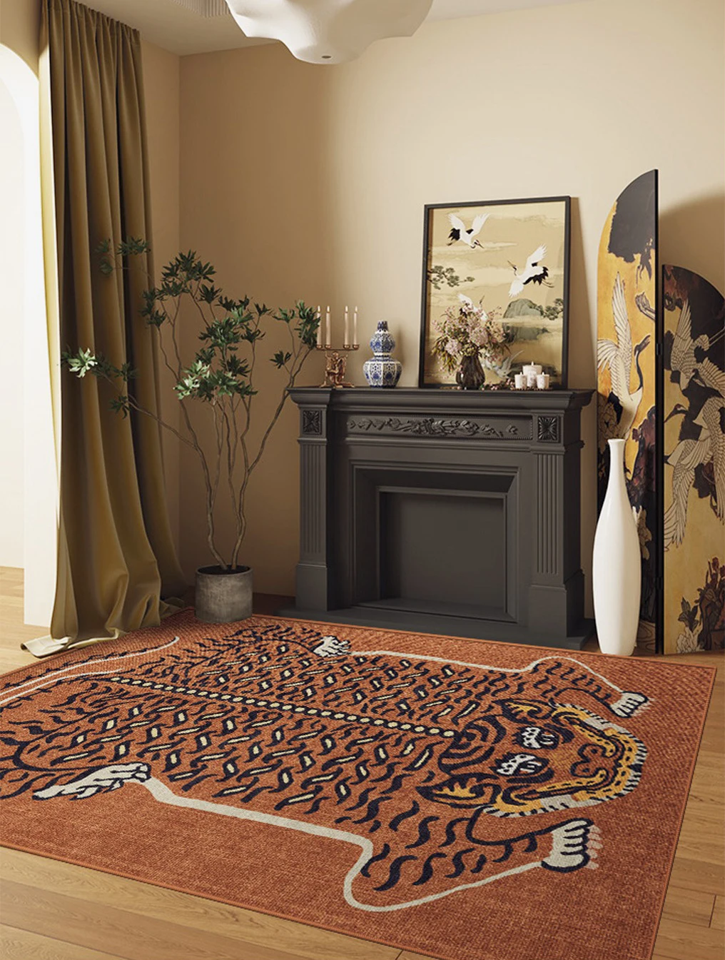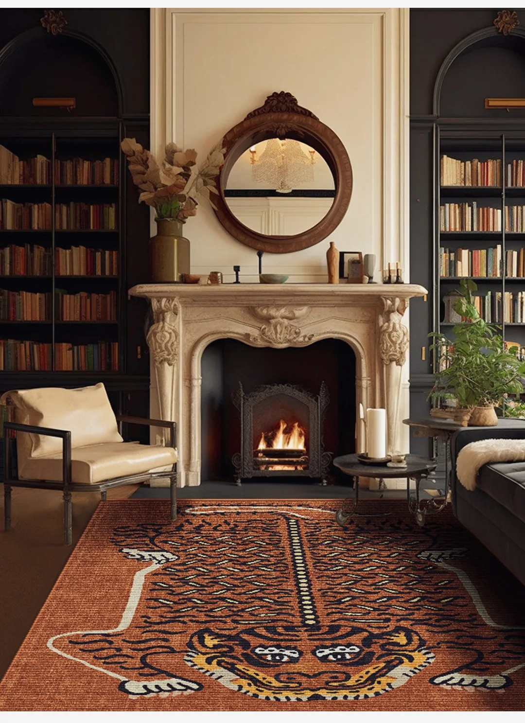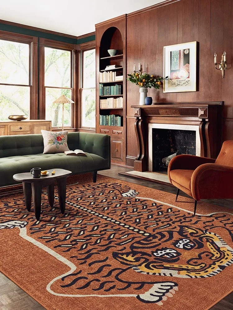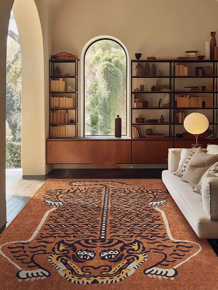 Tiger Print Living Room Carpet Retro Luxury Large Area Bedroom Rug High-end Fashion Home Decor Sofa Coffee Table Mat Alfombra
