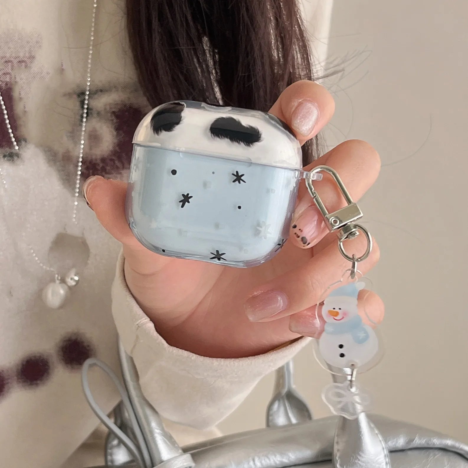 Transparent Blue Cow Pattern Stars + Pendants Are Suitable for Apple Airpodspro2 Case/Airpodspro Case/Airpods4 Case/Airpods3 Cas