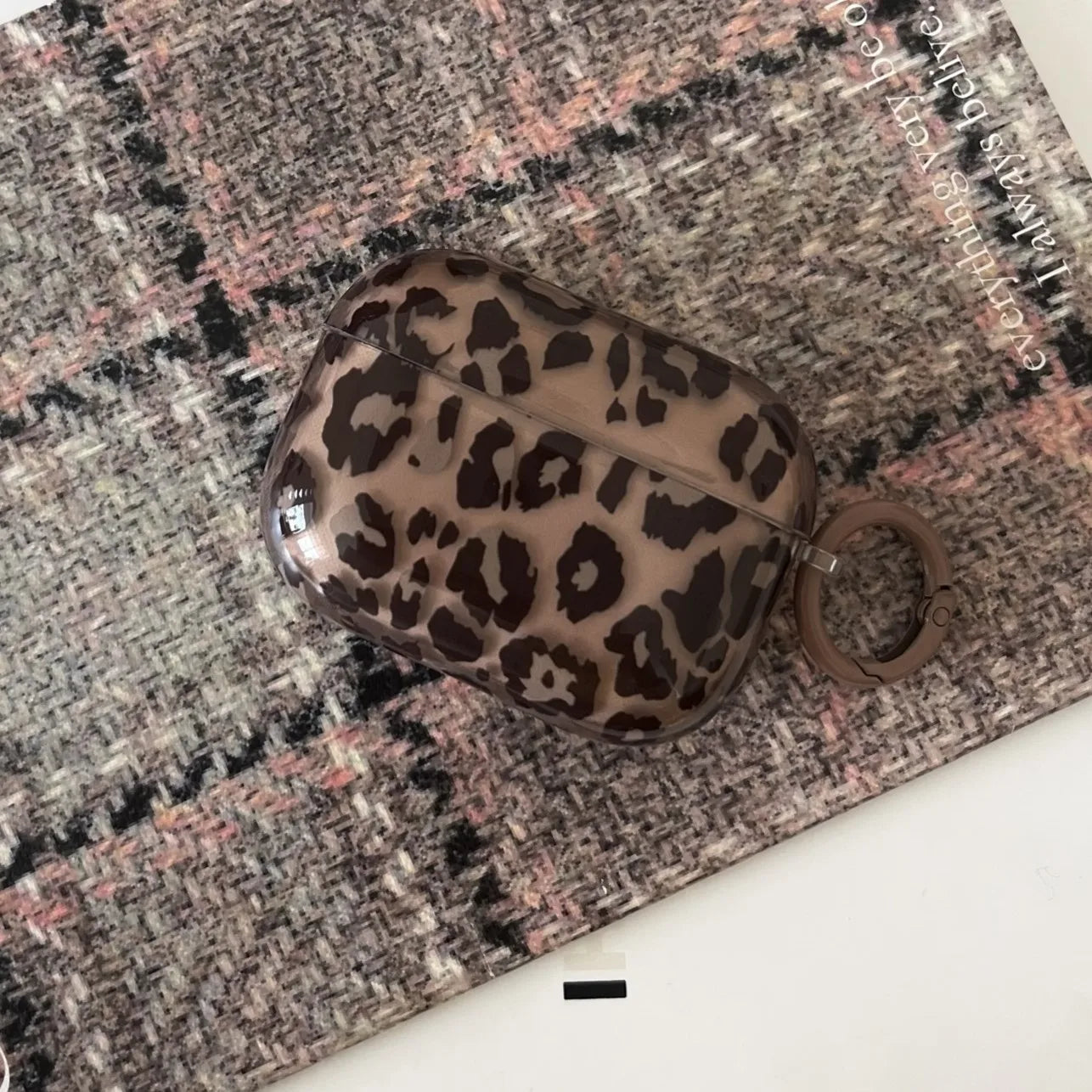 Transparent Brown Leopard Print + Ring Suitable for Apple Airpodspro2 Case/Airpodspro Case/Airpods4 Case/Airpods3 Case/Airpods2