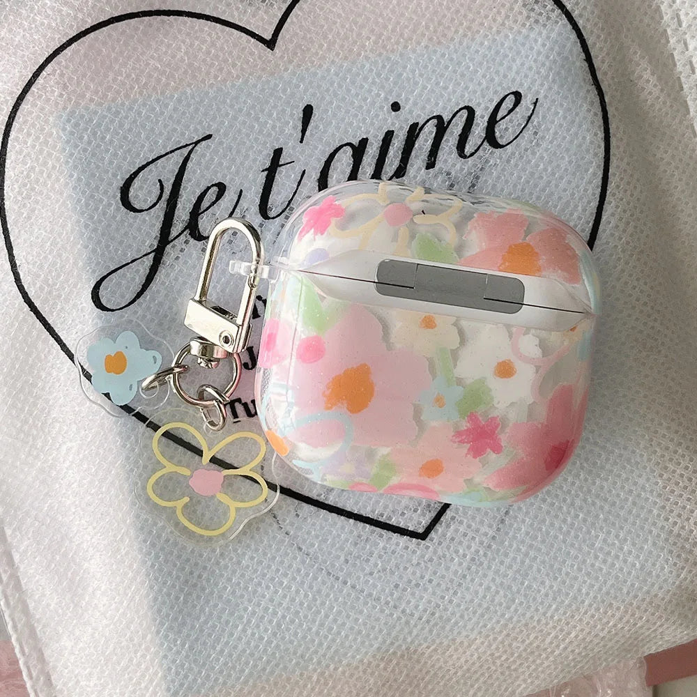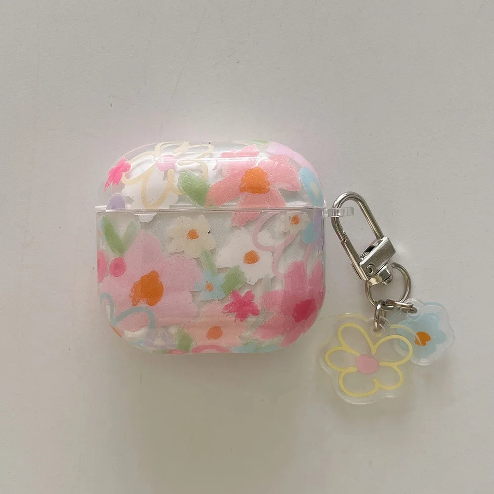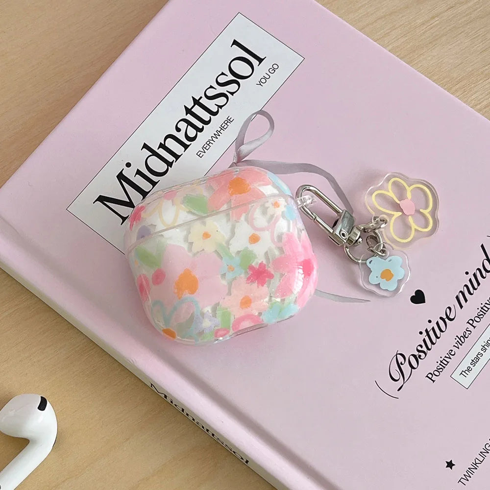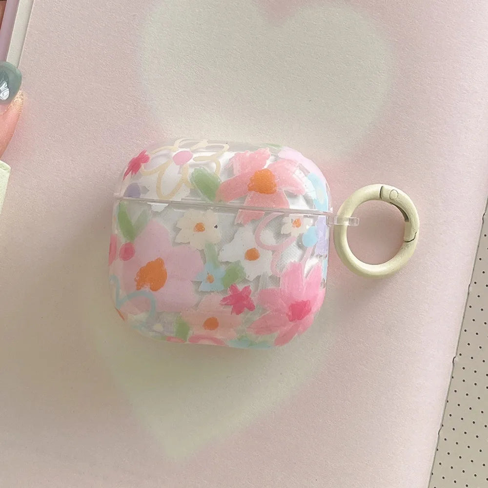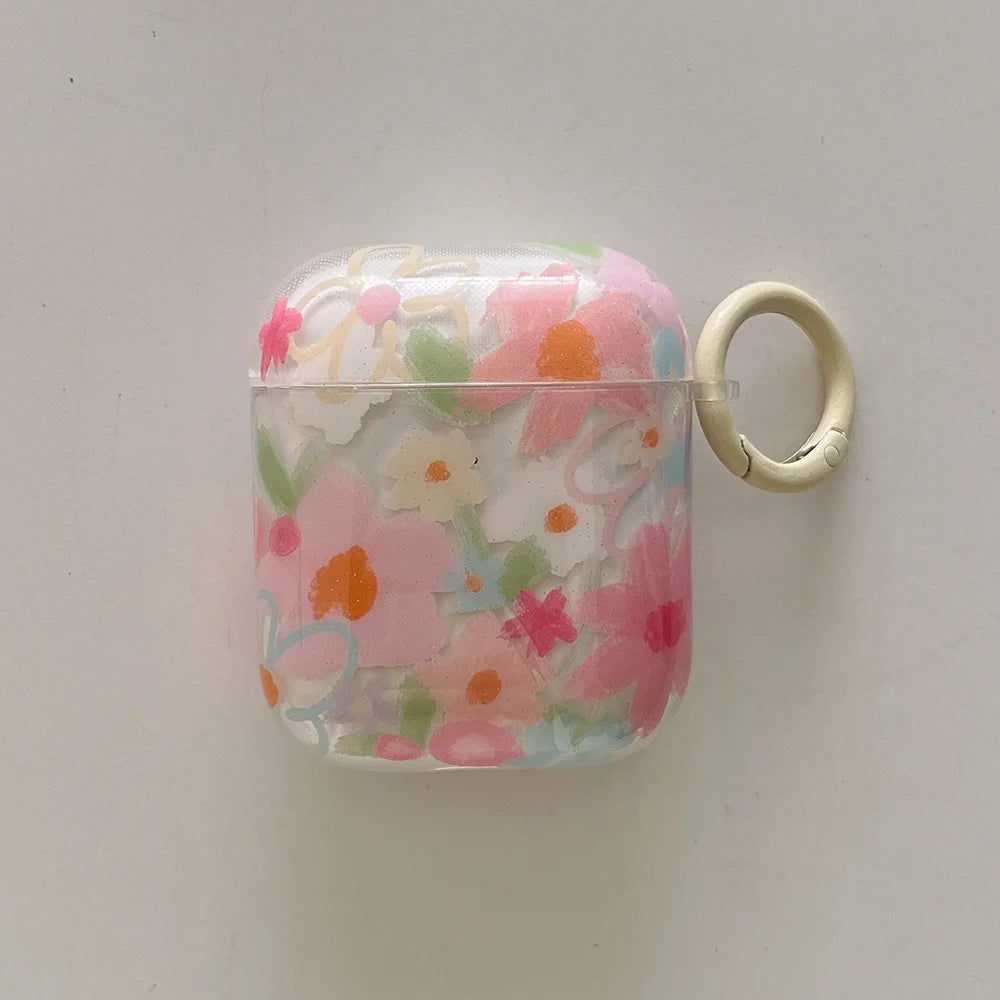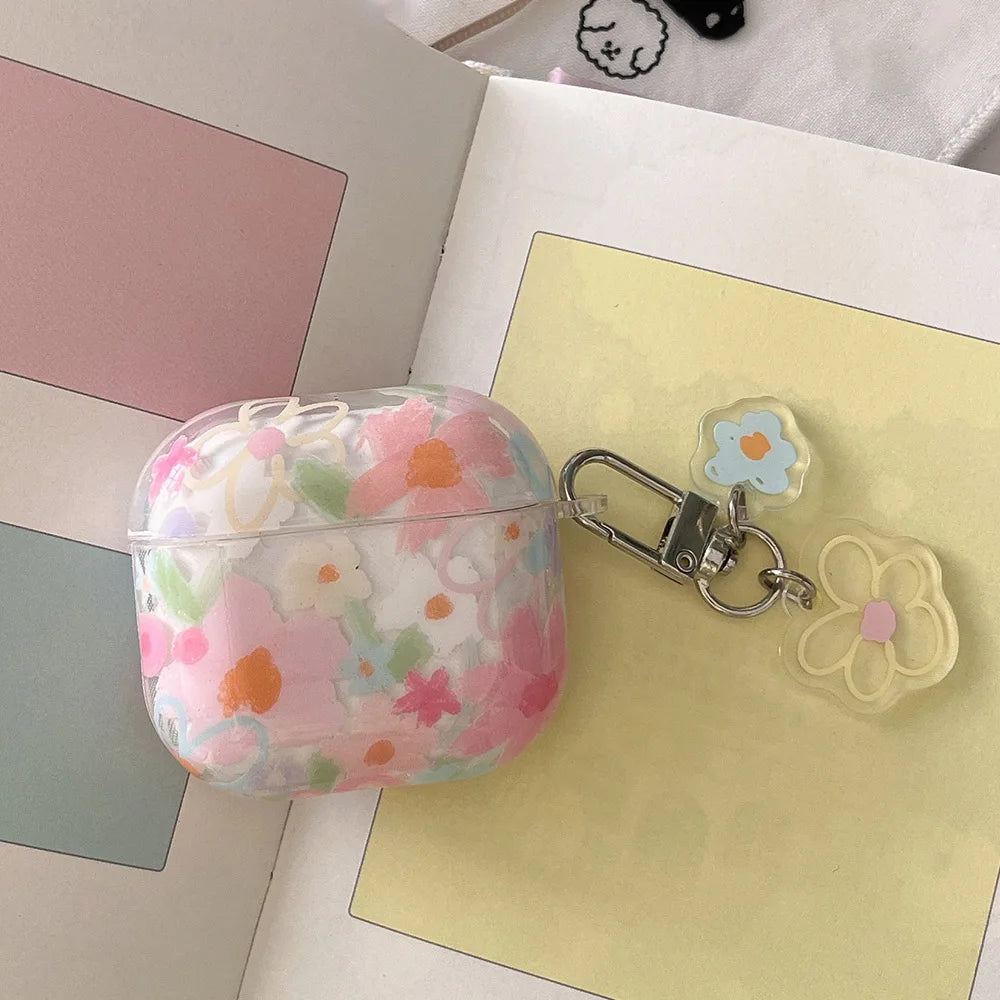 Transparent Oil Painting Flower Shockproof Protector With Keychain For AirPods 1 2 3 4 Case For AirPods Pro 2 Protection Cover