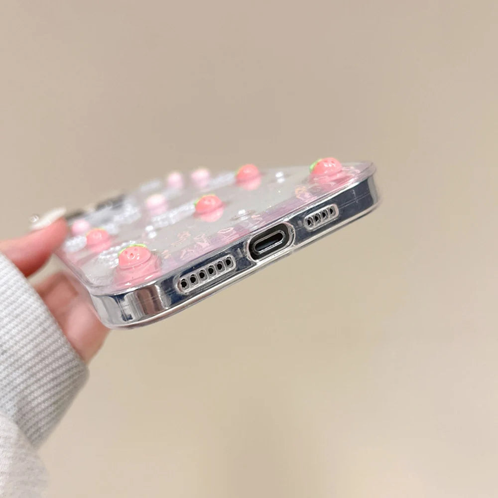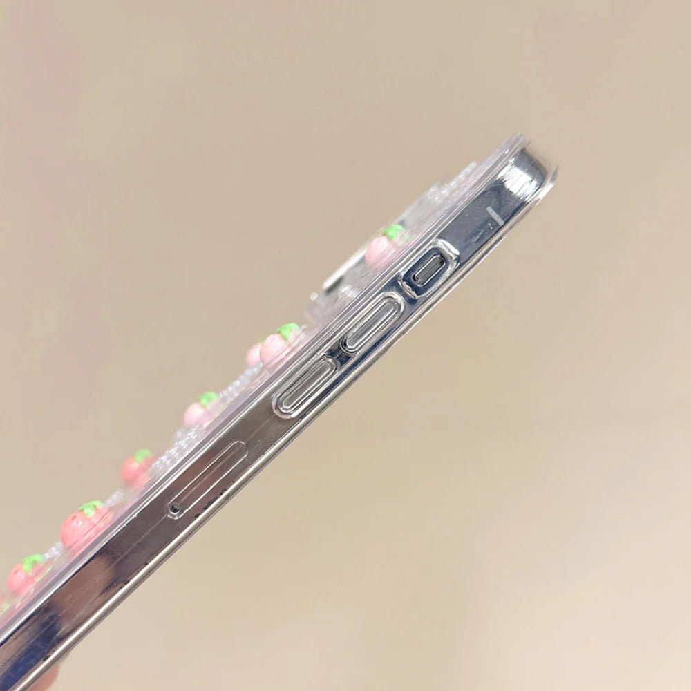 Style: Transparent Strawberry Pearl Bow Soft Phone Case for iPhone 16 Pro Max Fundas Cover for iPhone 11 12 13 14 15 Pro Max Back Cover