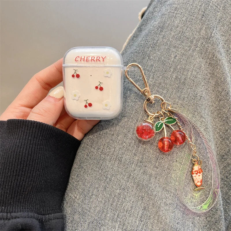 Transparet Cherry Smile Silicone Case For AirPods 4 Earphone Cover for Apple Airpod Pro 1 2 3 4th Gen Protective Case Hook