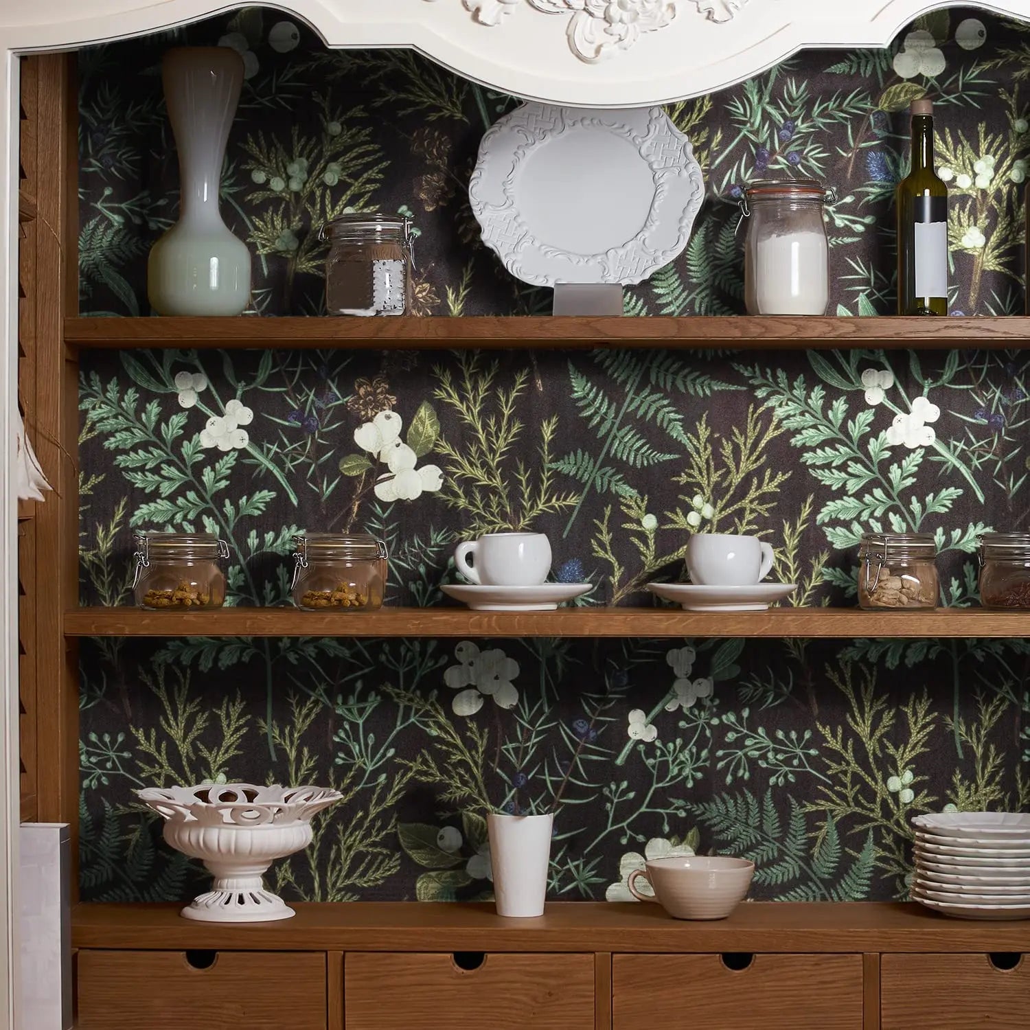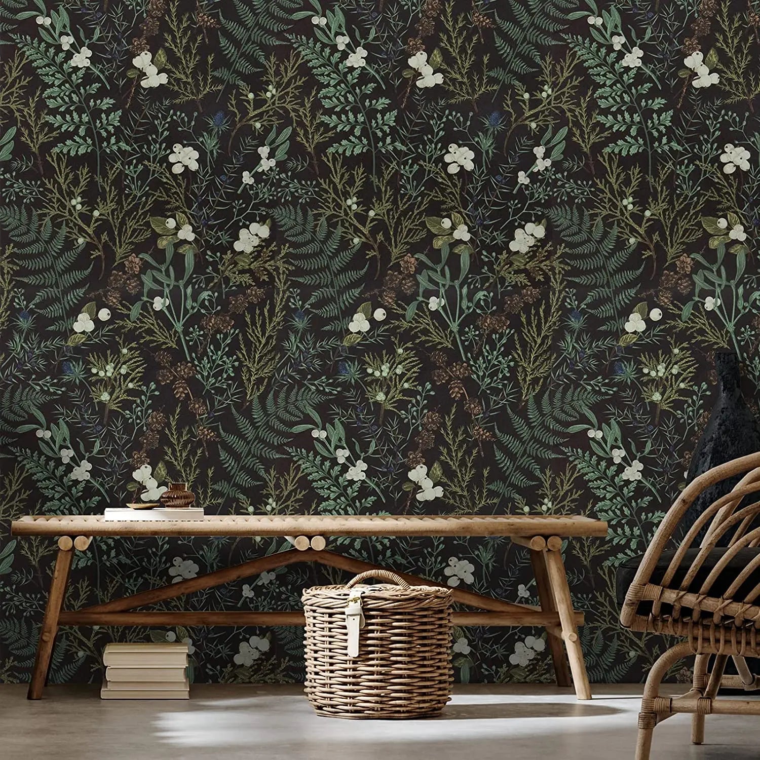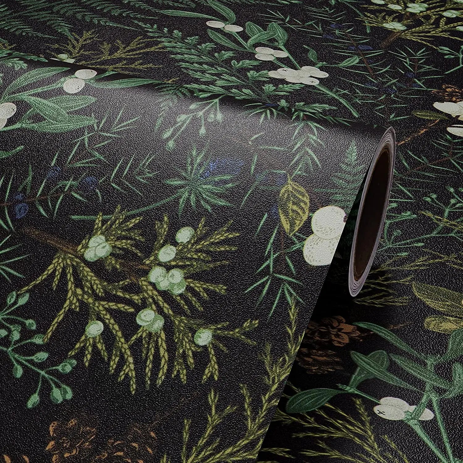 Tropical Moss Leaf Peel and Stick Wallpaper Black Floral Self Adhesive Removable Floral Contact Paper for Bedroom Walls Cabinets