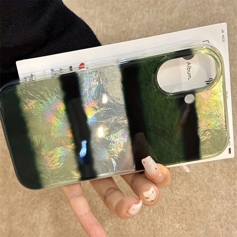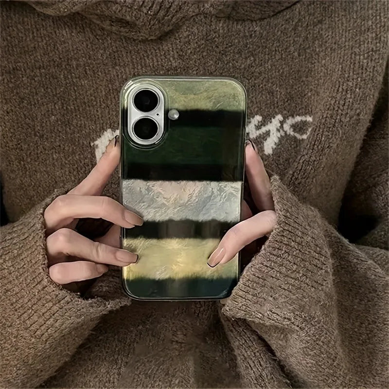 Whirlpool Pattern IND Retro Splicing Green Stripe Phone Case for iPhone 17 11 12 13 14 15 16 Pro Max XS X XR 7 8 Plus 16e Cover