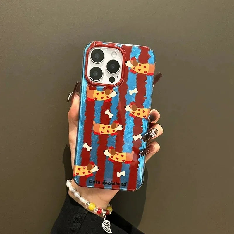 Whirlpool Pattern Red Blue Contrasting Sausage Dog Case For iPhone 16 15 Pro Max 14 13 12 11 XS XR X SE 7 8 Plus Silicone Cover