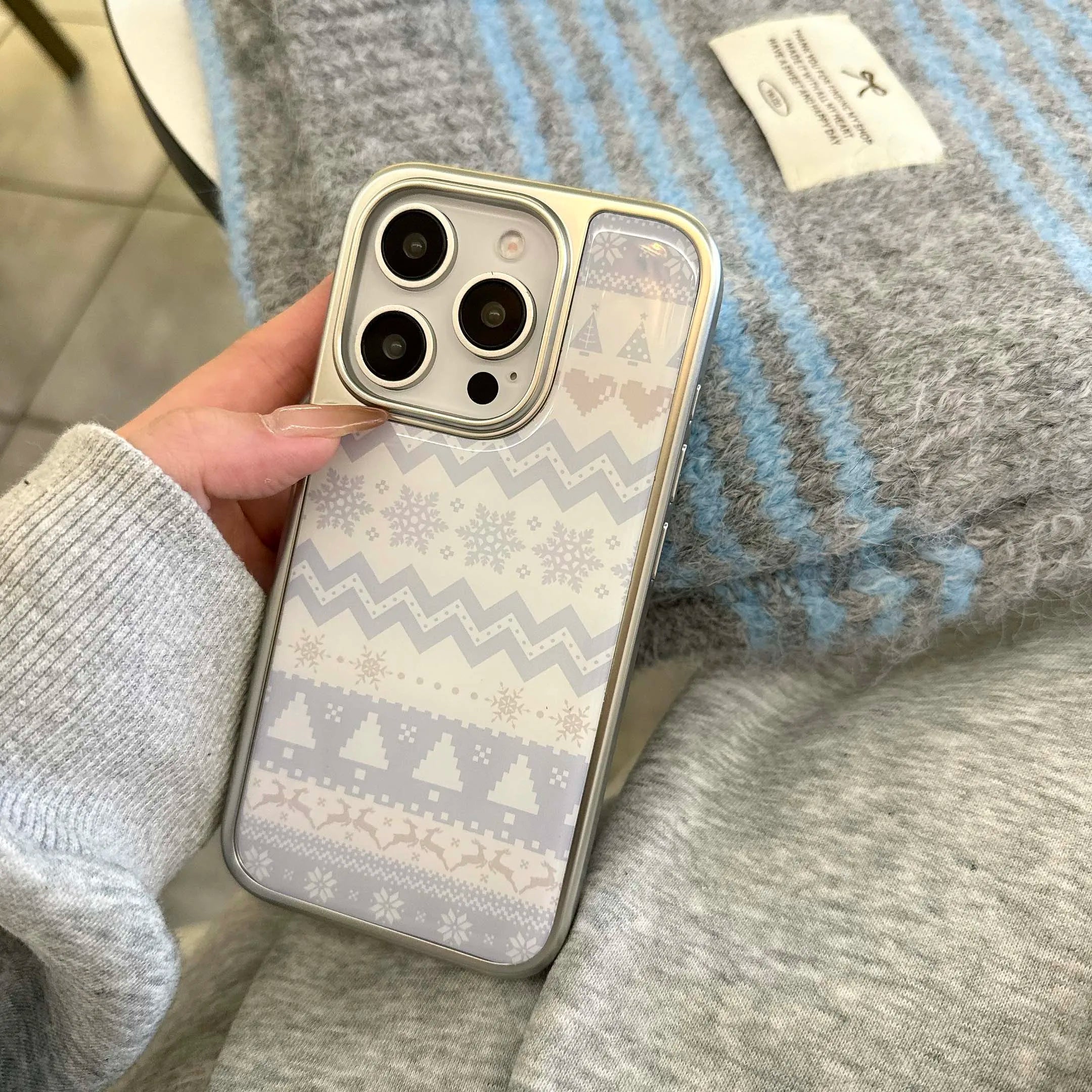 Winter plating phone case for iphone 14promax 15pro 16 14 13 15 pro max 16pro 13promax snowman print protector cover shell