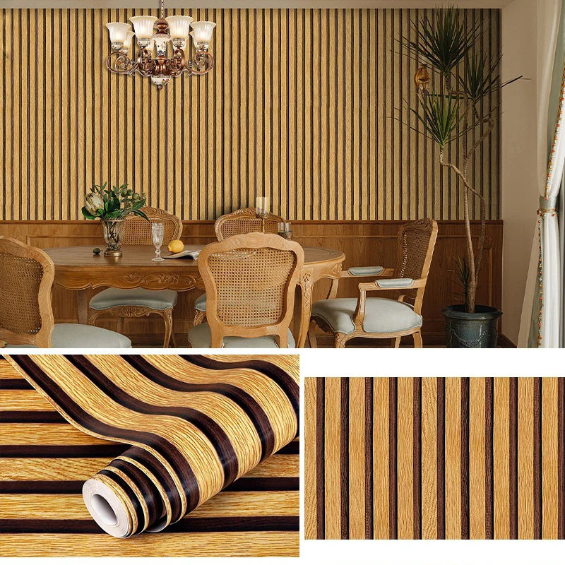 Wood Stripe 45cm Background Wall Self-adhesive Wallpaper Desk Cabinet Furniture Renovation PVC Waterproof Sticker