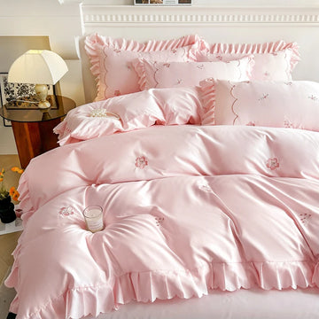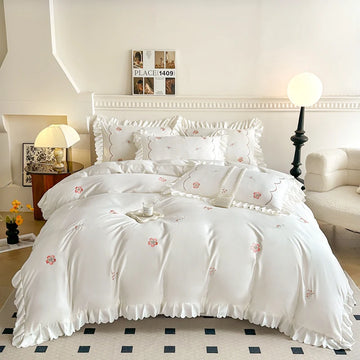 Bedding Set Embroidered Bed Linen Set Ruffles Duvet Cover Pillowcase with Bedsheet Smooth Bedclothes for Home