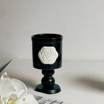 French Camellia Black Ceramic Mug Aromatherapy Cup Coffee Mugs Home Decoration Candle Wooden Holder Household Ornaments