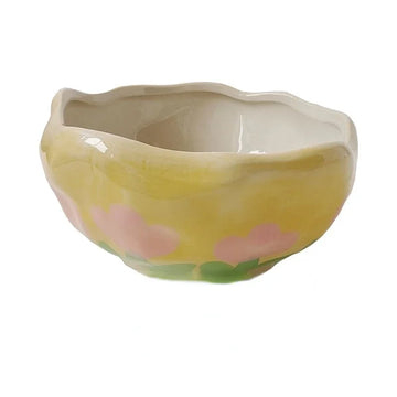 Creative hand pinched irregular ceramic bowl ins style girl heart lovely dessert yogurt bowl breakfast oatmeal bird's nest bowl