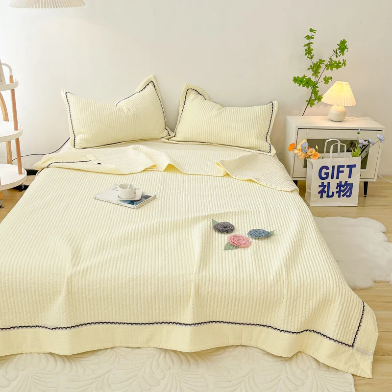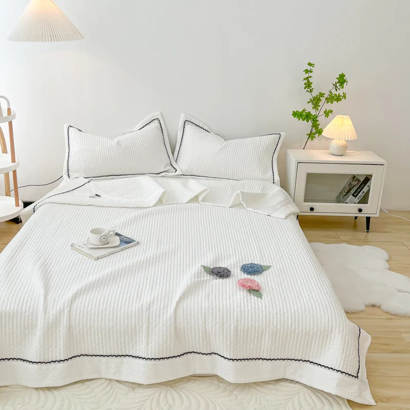 1/3Pc Korean Princess Elegant Handmade Flowers Embroidery Quilted Summer Quilt Bedspread Air-conditioning Skin-friendly Blanket