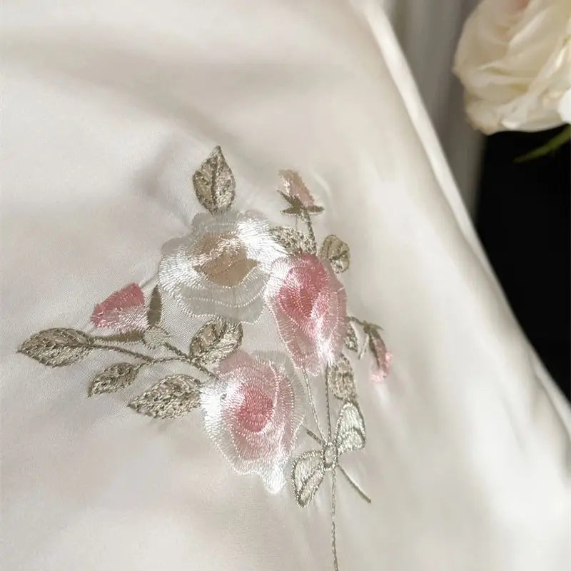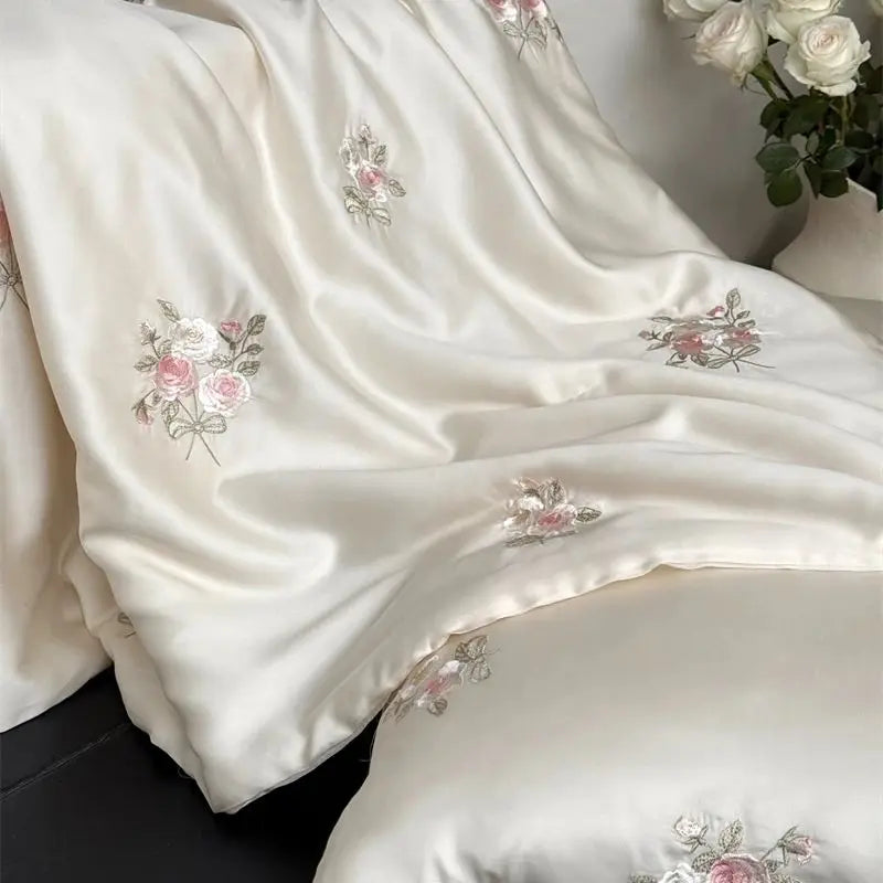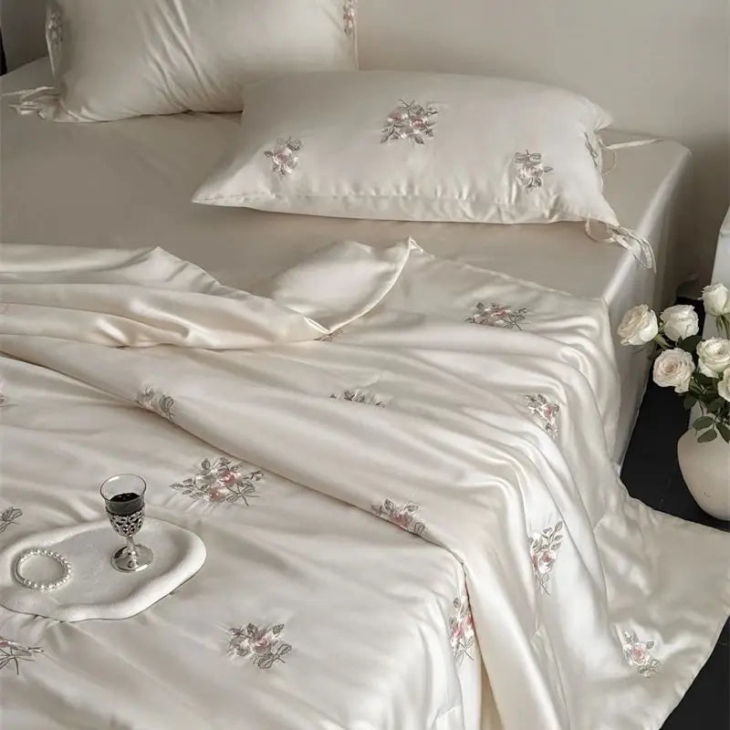 60S Lyocell Bamboo Fiber Flower Embroidery Summer Quilt Bedding Set Soft Silky Thin Comforter Blanket With Bed Sheet Pillowcases