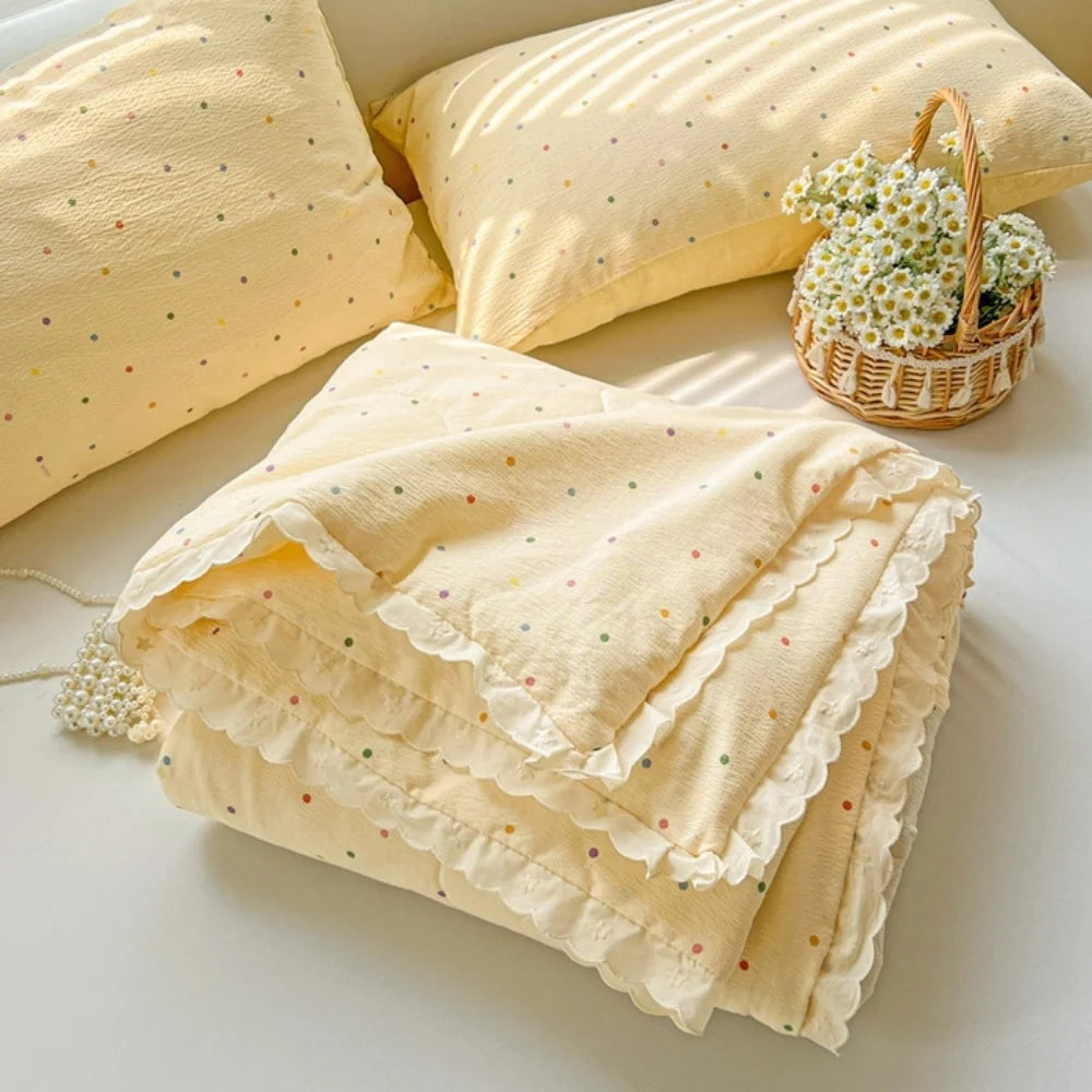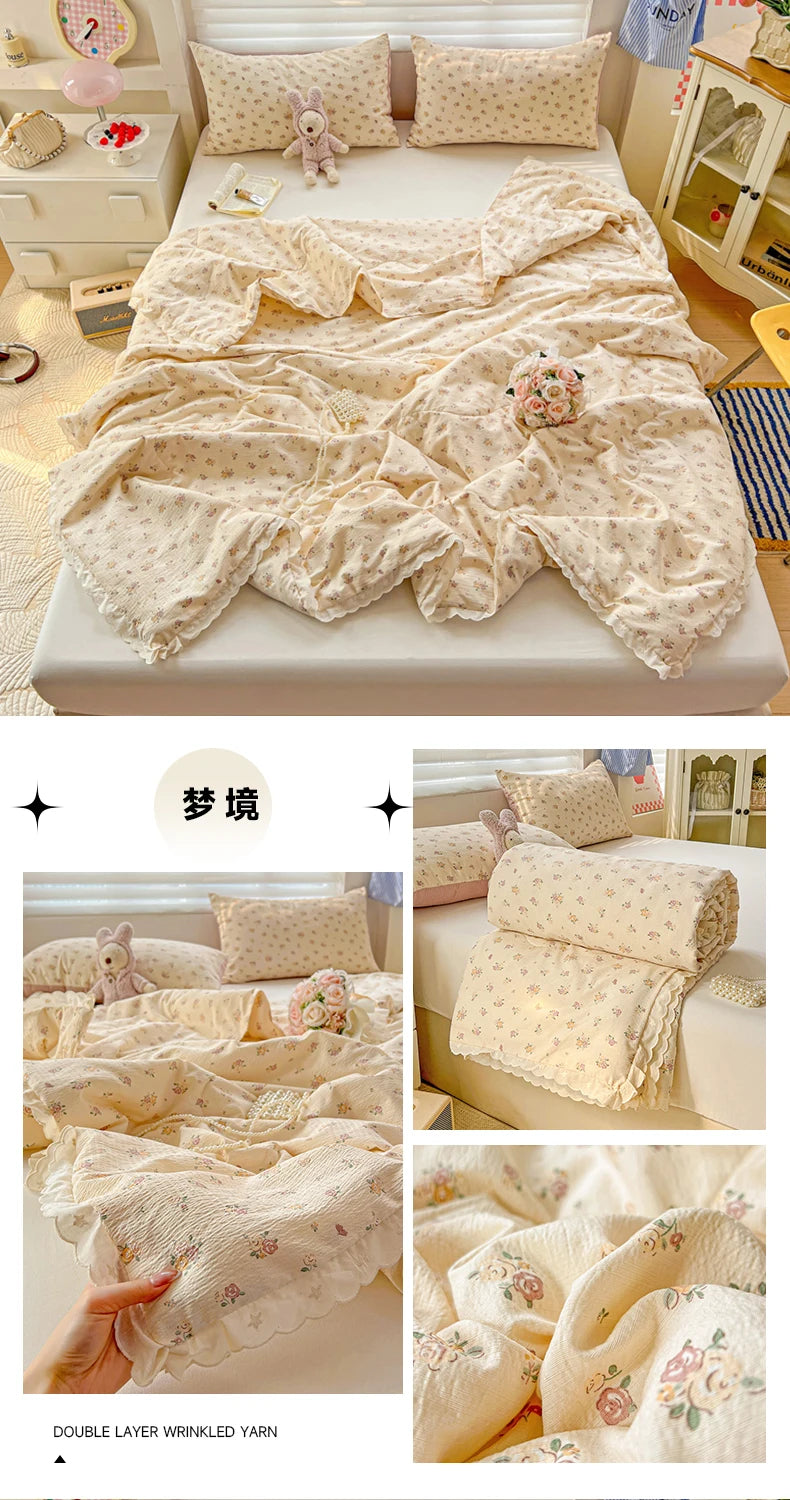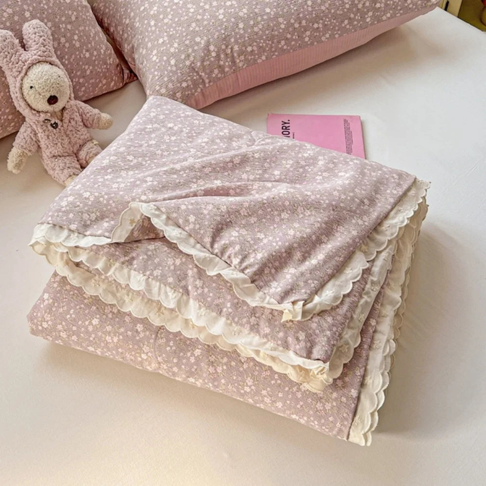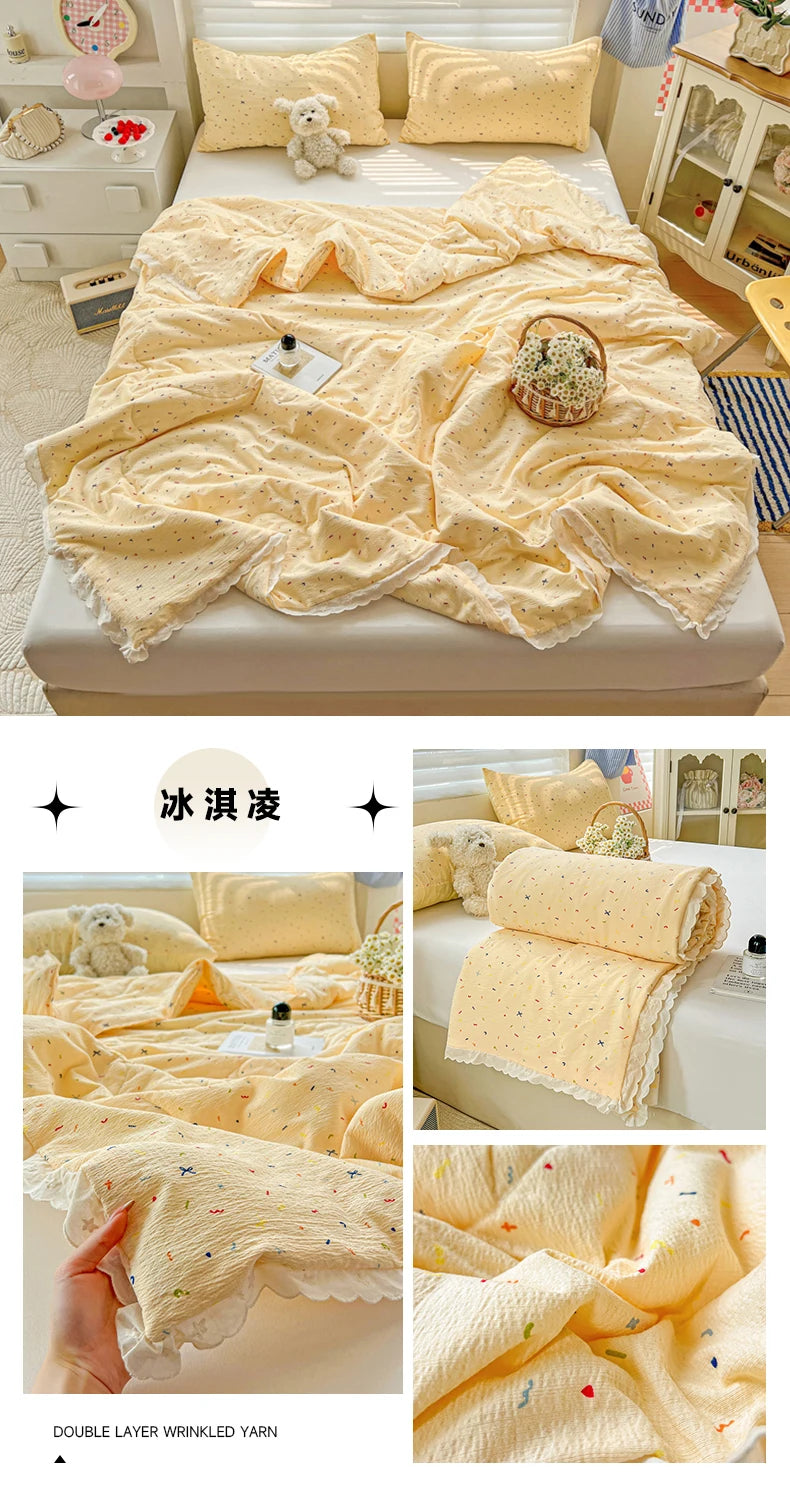 Class A Pure Cotton Summer Quilt Soybean Fiber Thin Quilt Princess Style Lace Ruffles Comforter Summer Air Conditioned Blanket