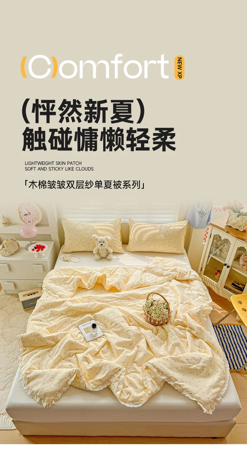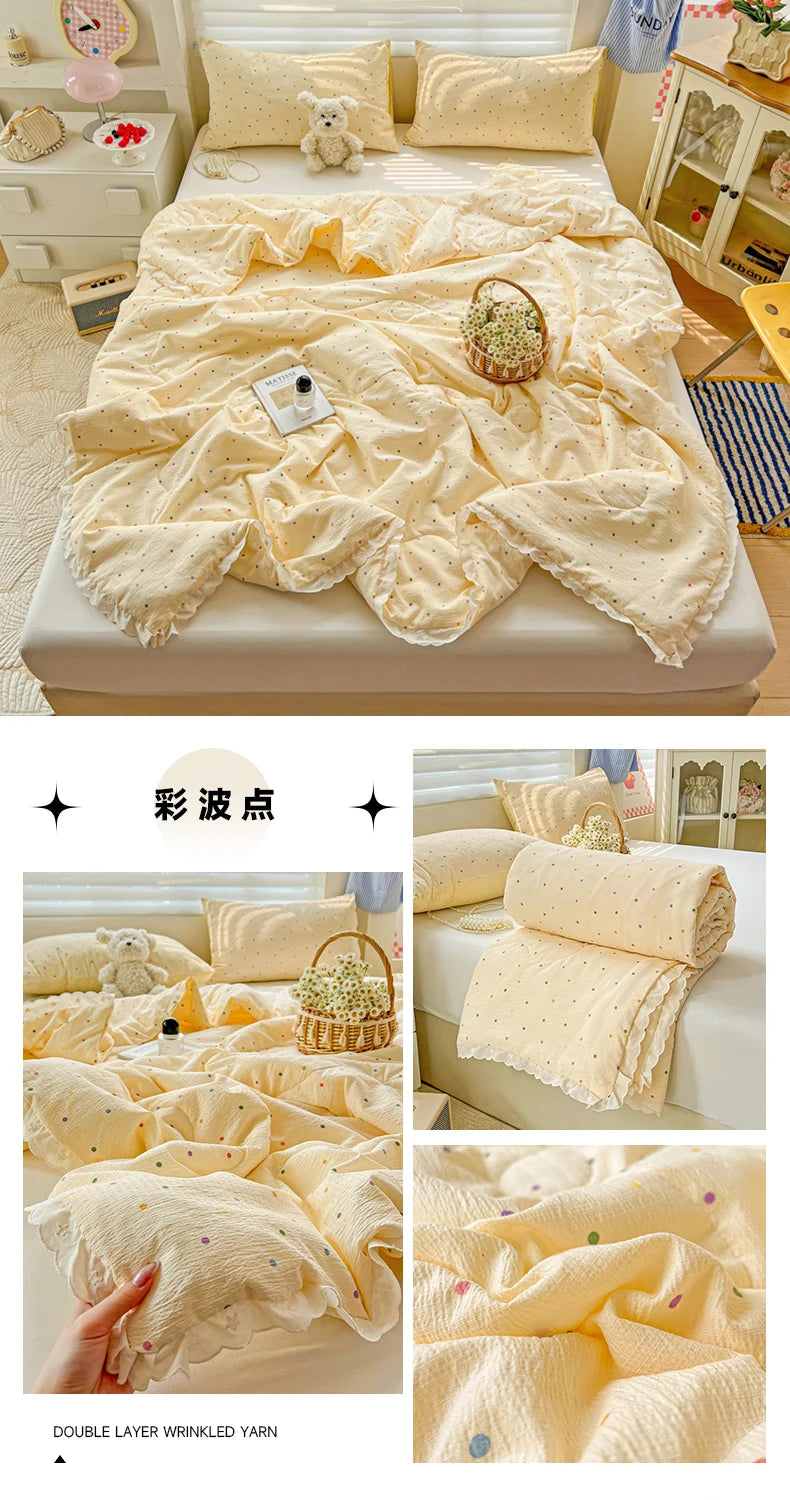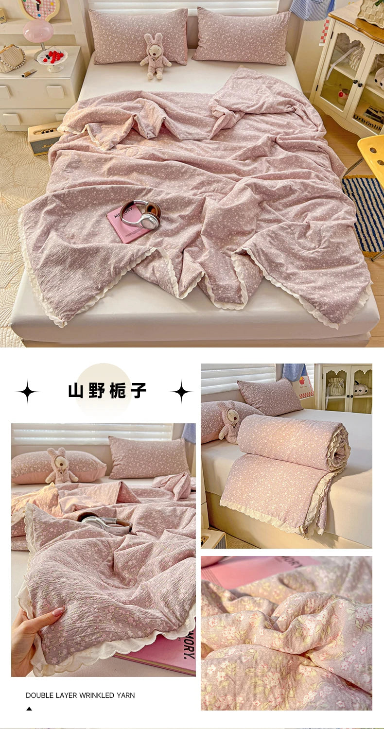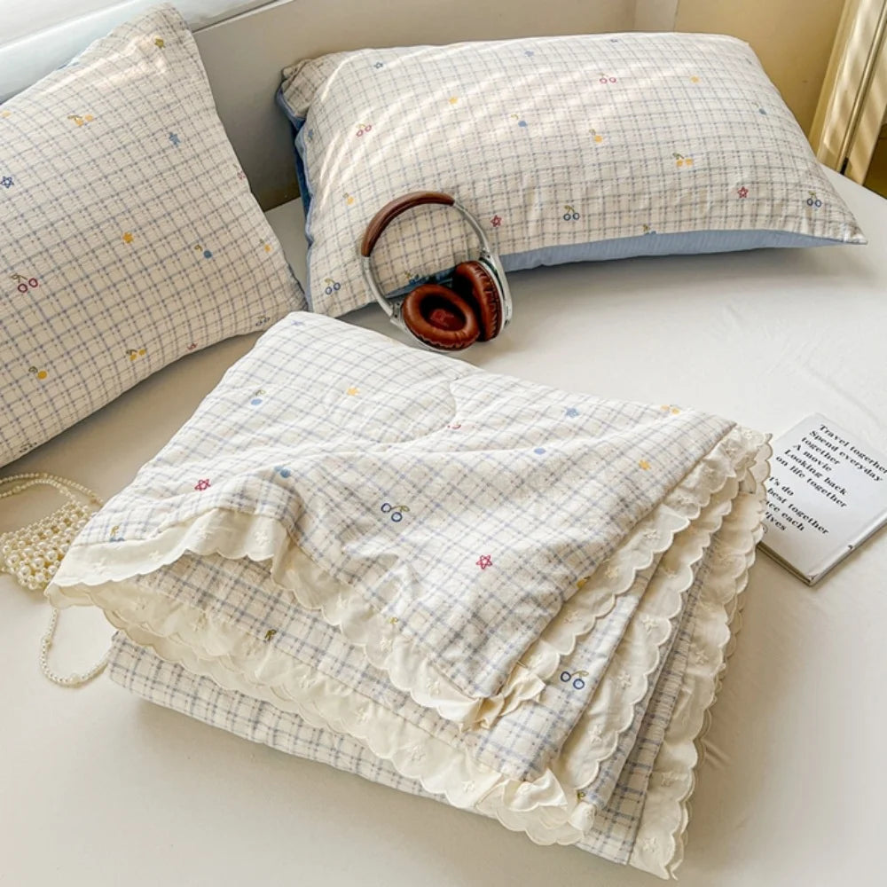 Class A Pure Cotton Summer Quilt Soybean Fiber Thin Quilt Princess Style Lace Ruffles Comforter Summer Air Conditioned Blanket