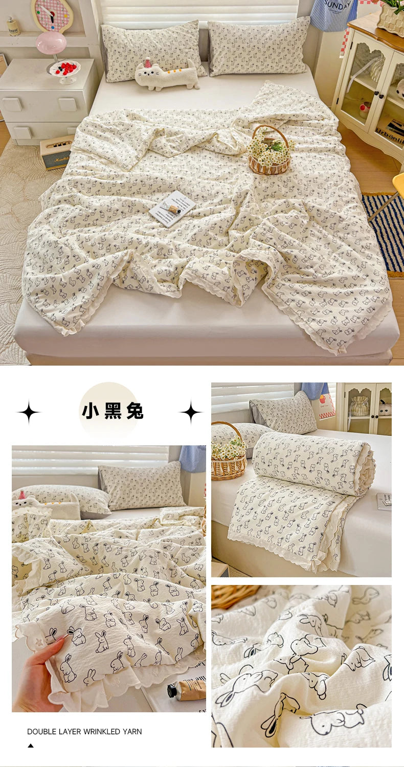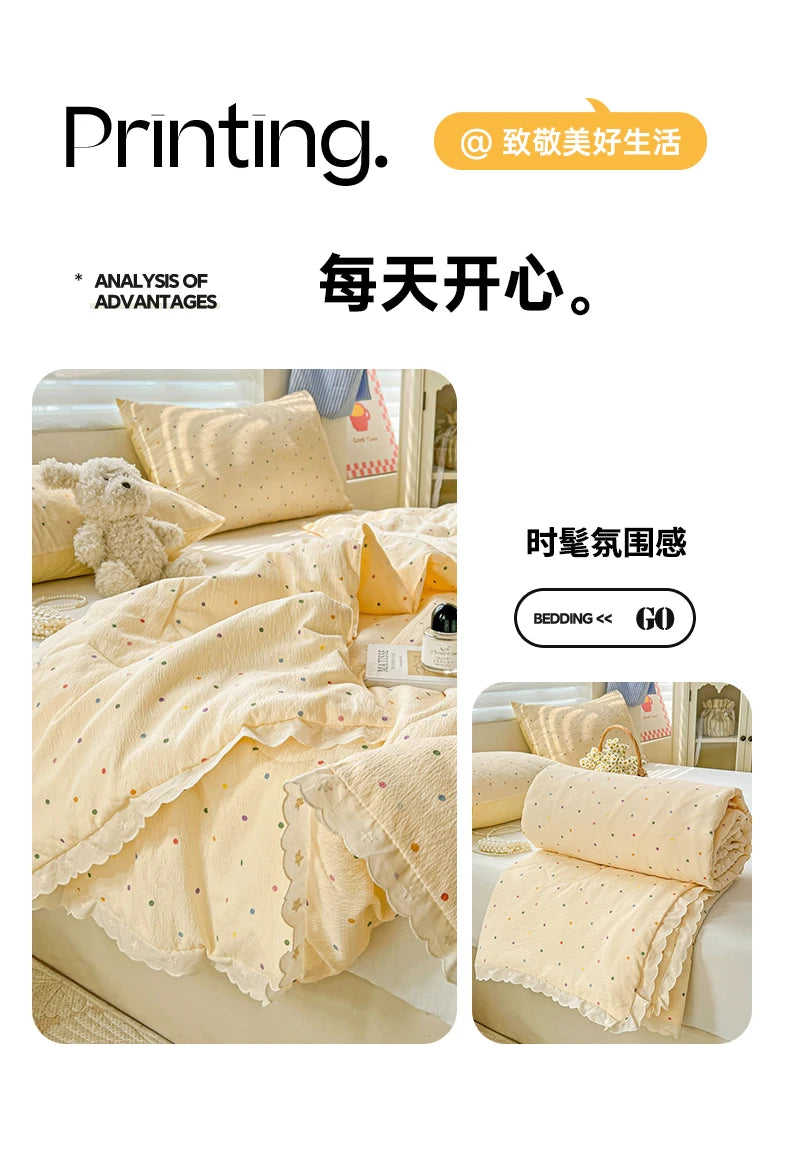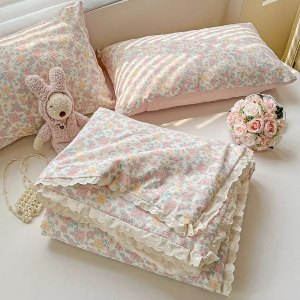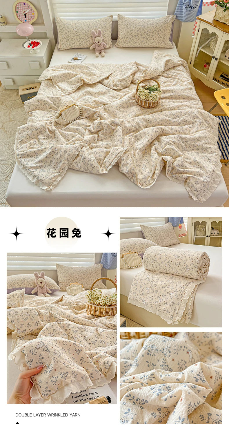 Class A Pure Cotton Summer Quilt Soybean Fiber Thin Quilt Princess Style Lace Ruffles Comforter Summer Air Conditioned Blanket