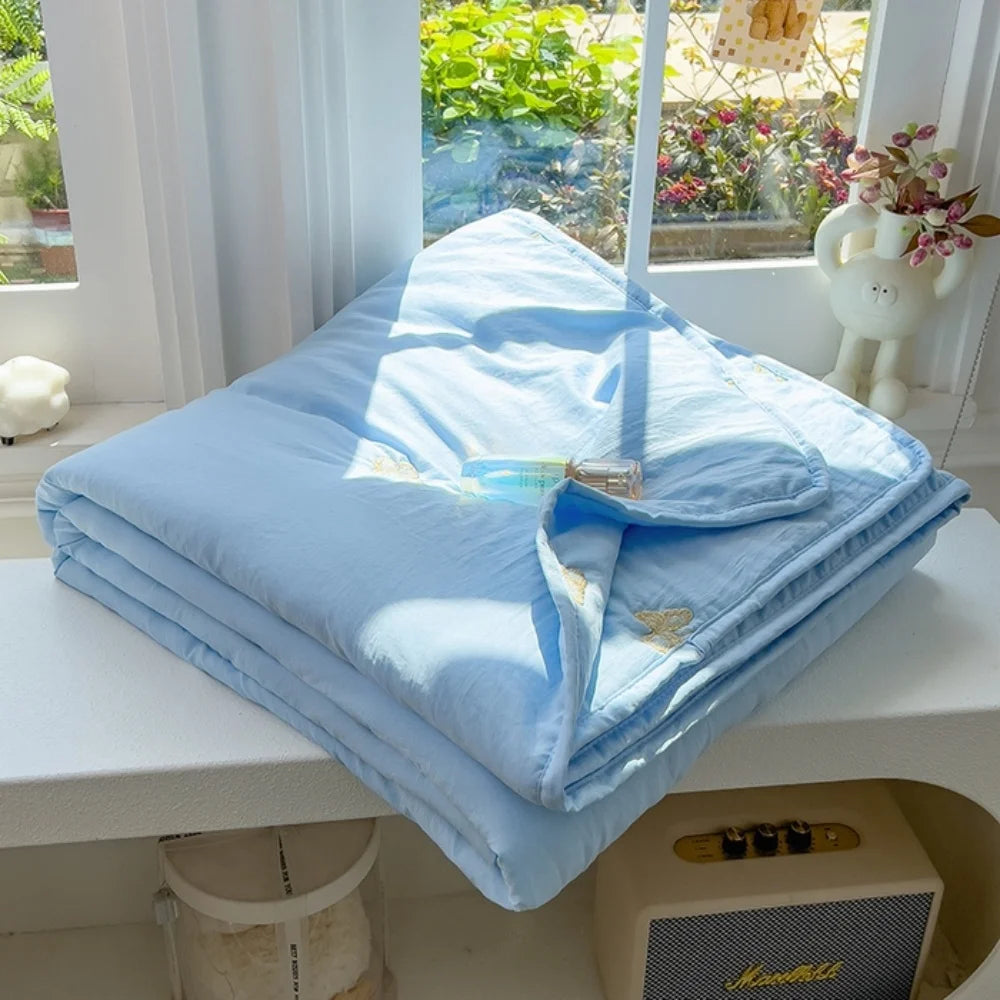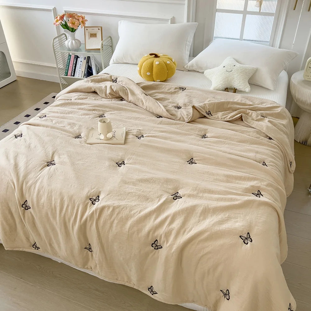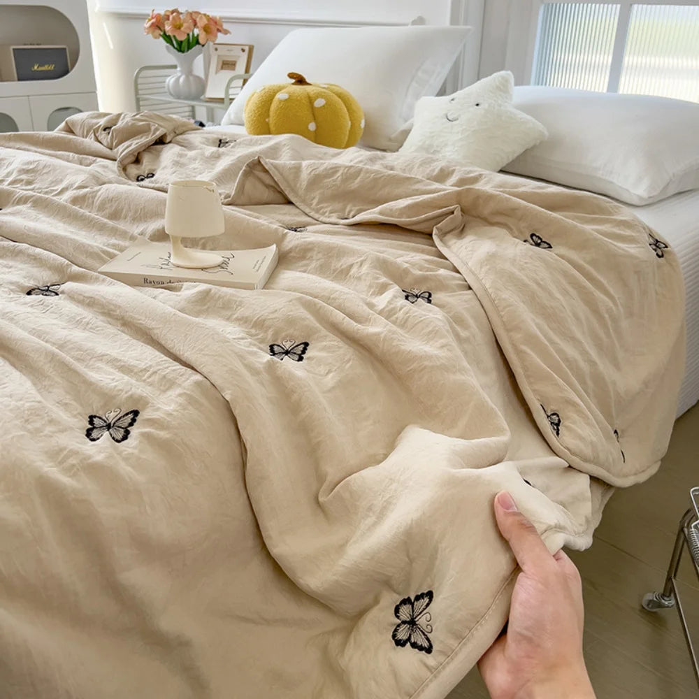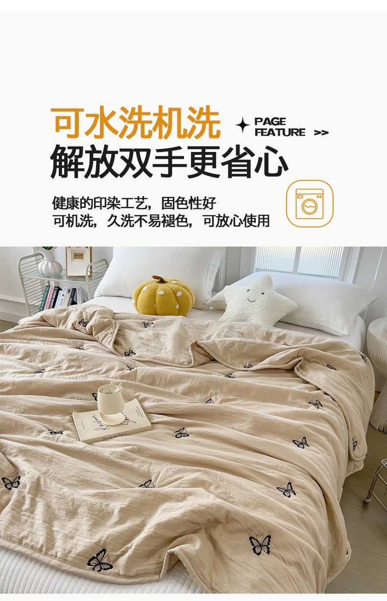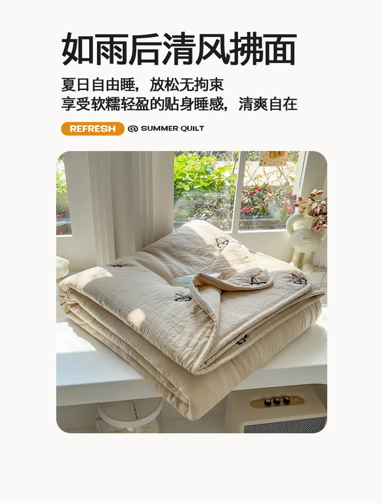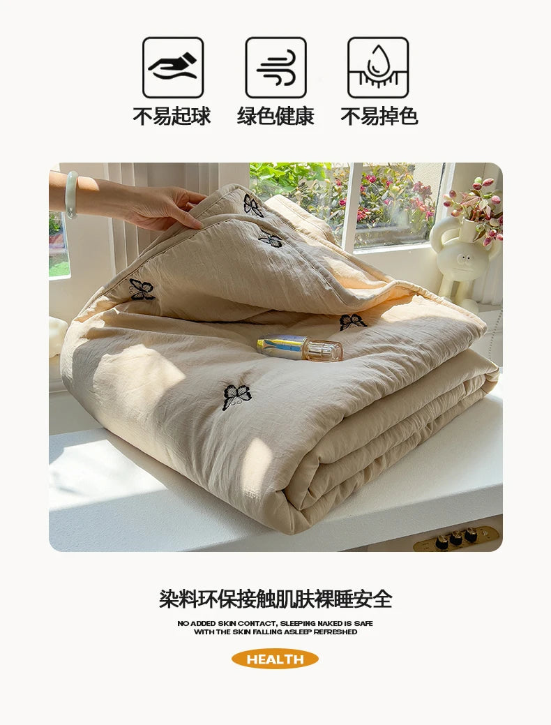 Embroidery Quilt Fluffy Soft Comfort Washed Cotton Embroidery Thin Quilt Machine Washable Blanket Dormitory Single Summer Quilt
