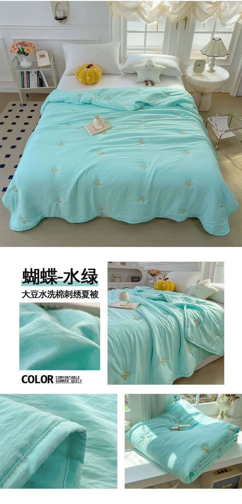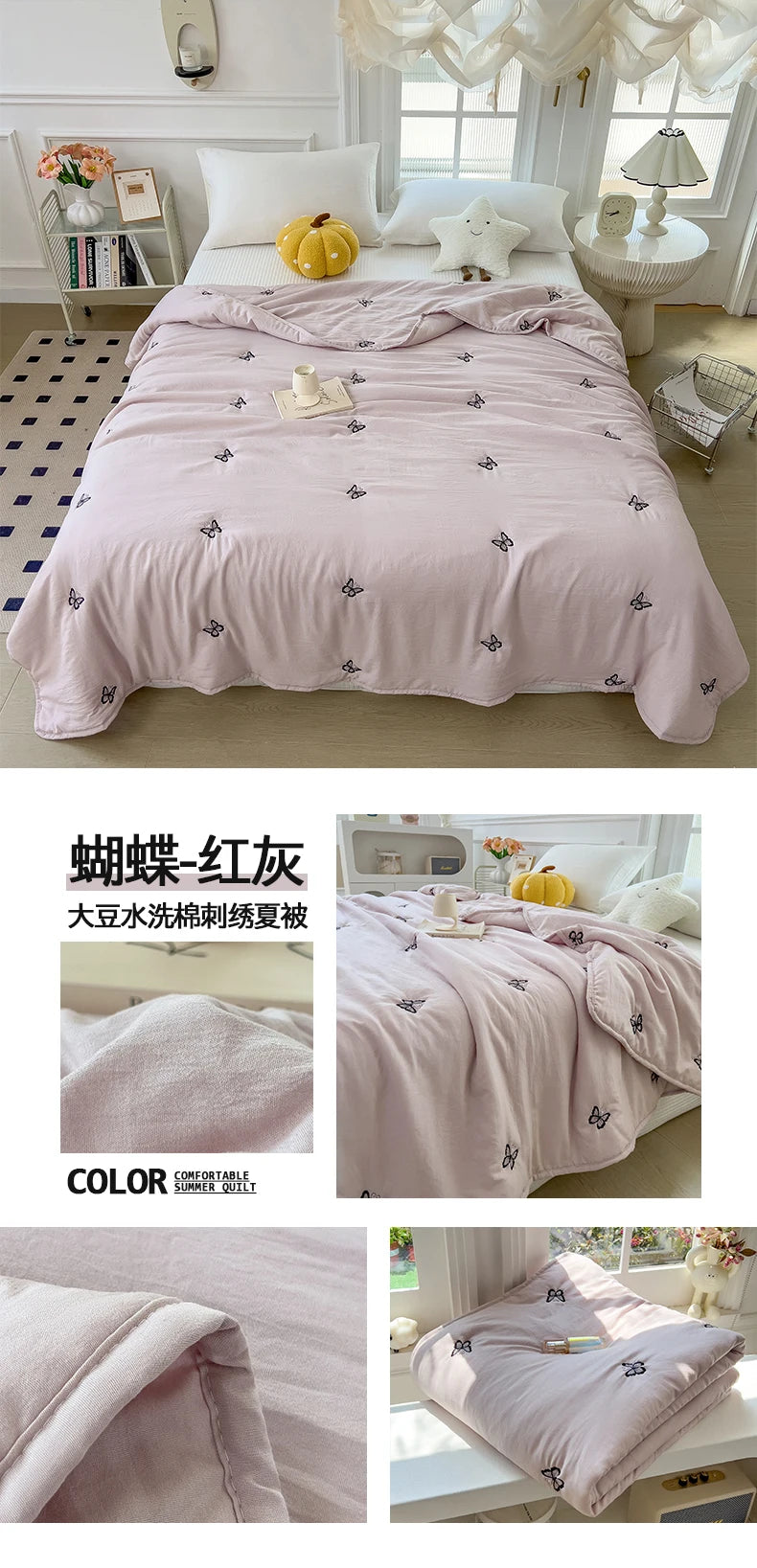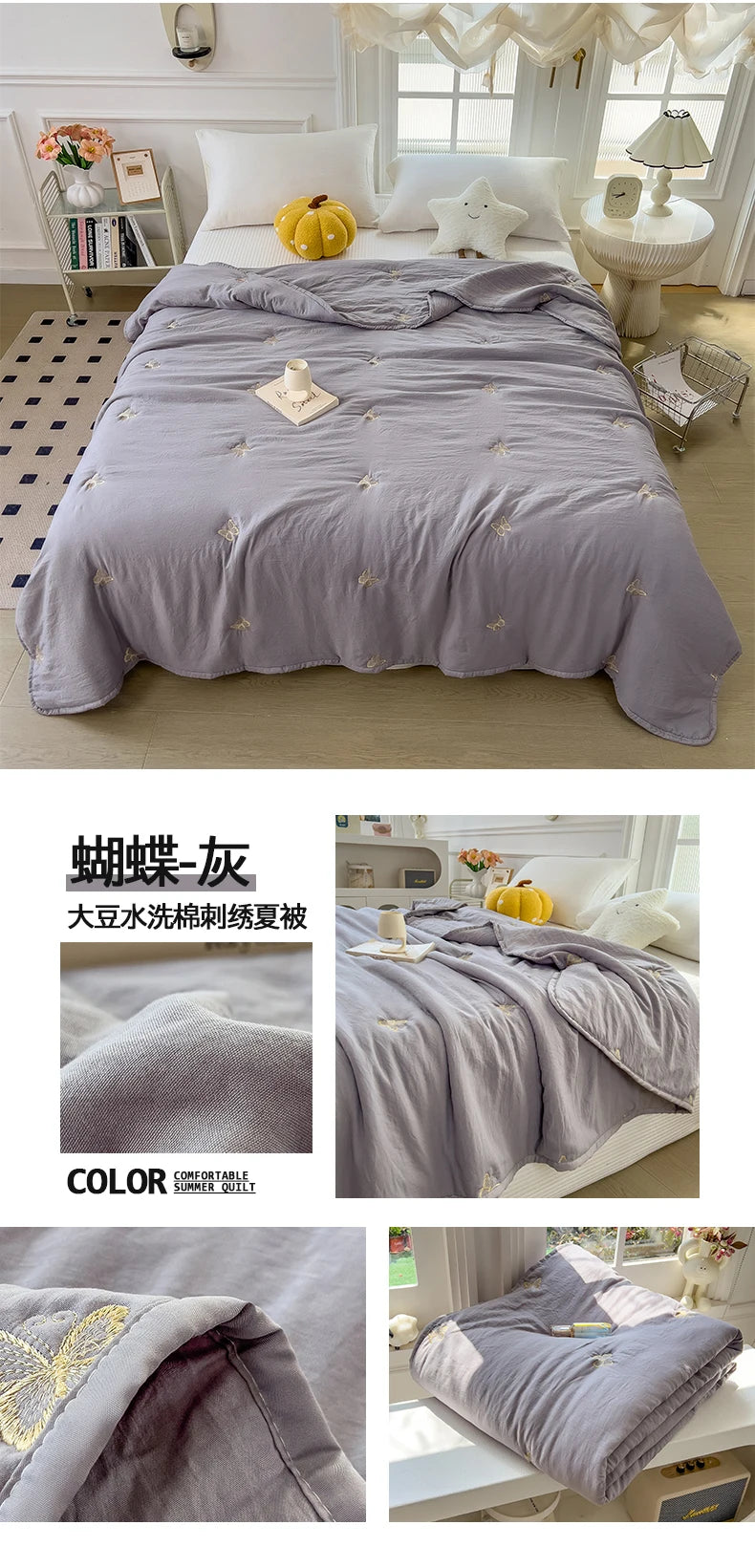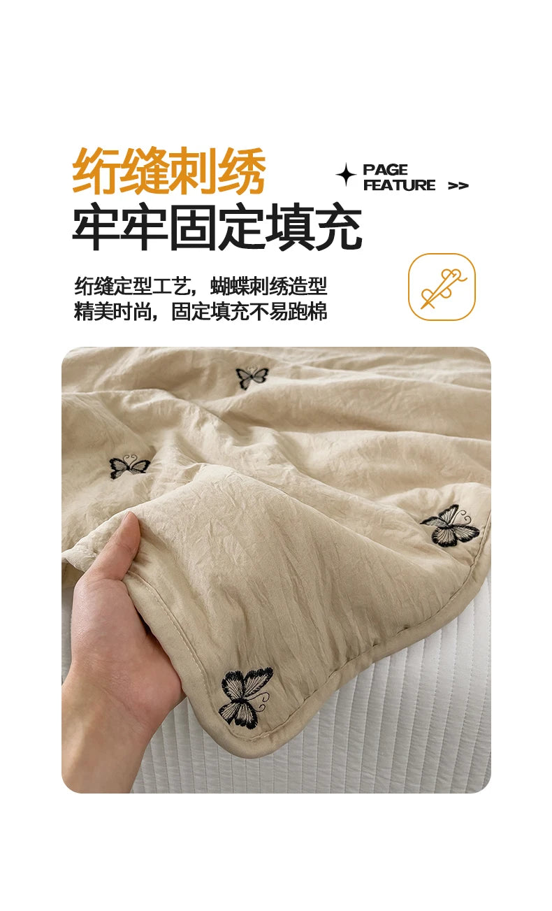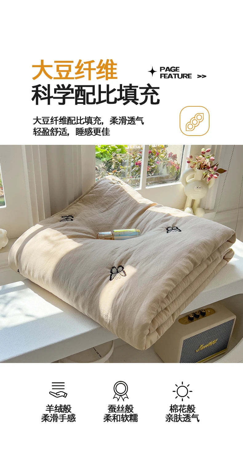 Embroidery Quilt Fluffy Soft Comfort Washed Cotton Embroidery Thin Quilt Machine Washable Blanket Dormitory Single Summer Quilt