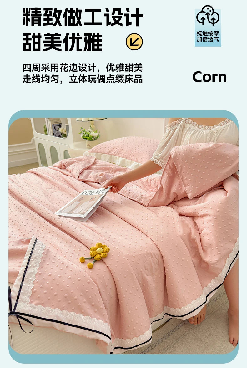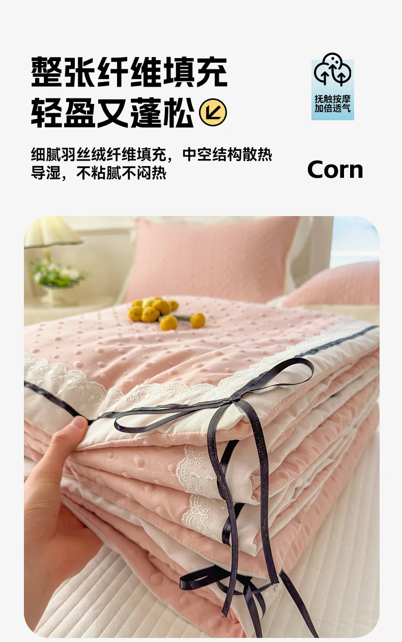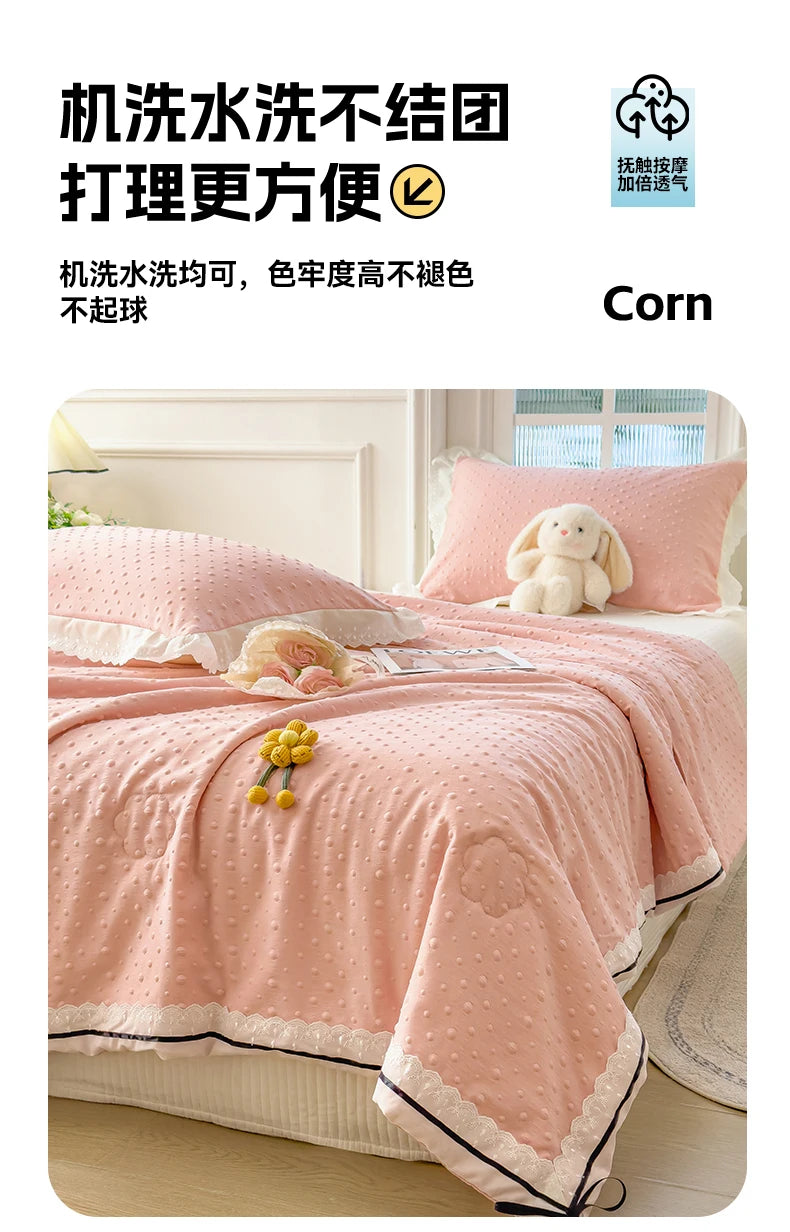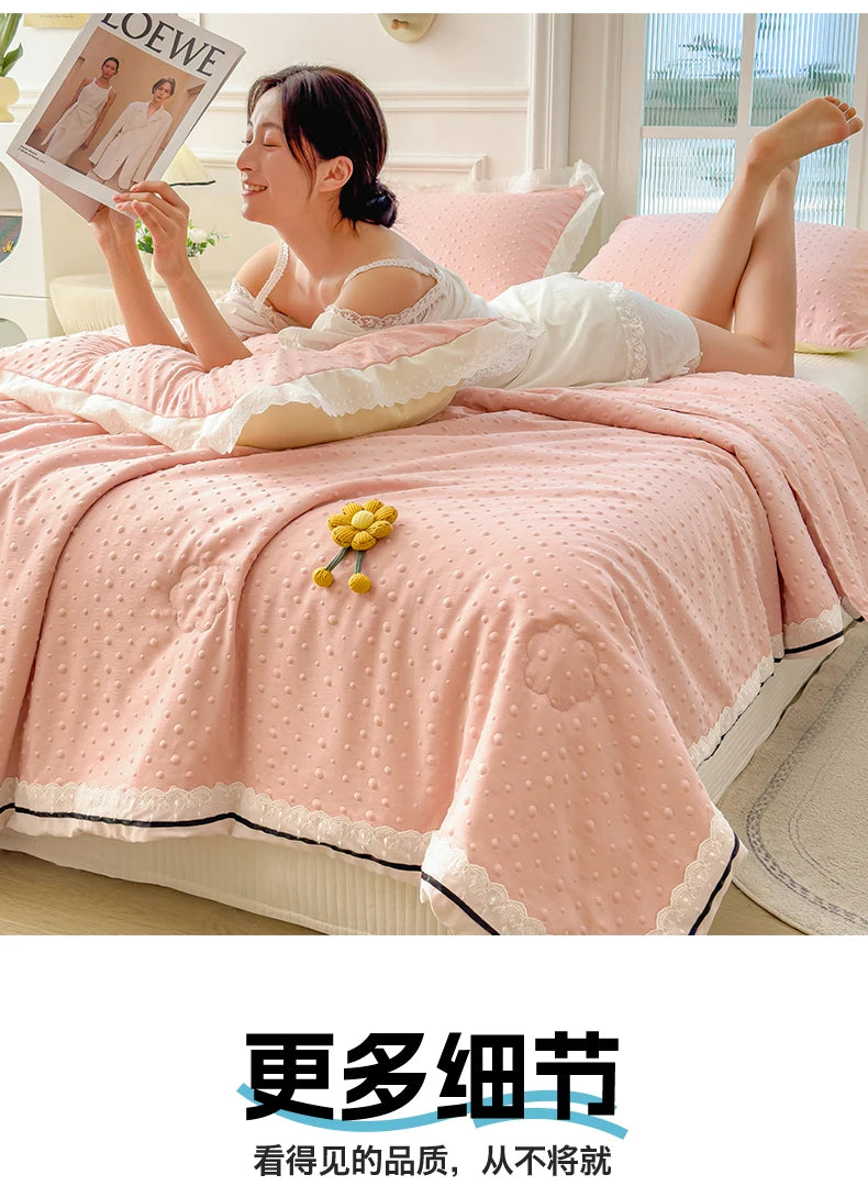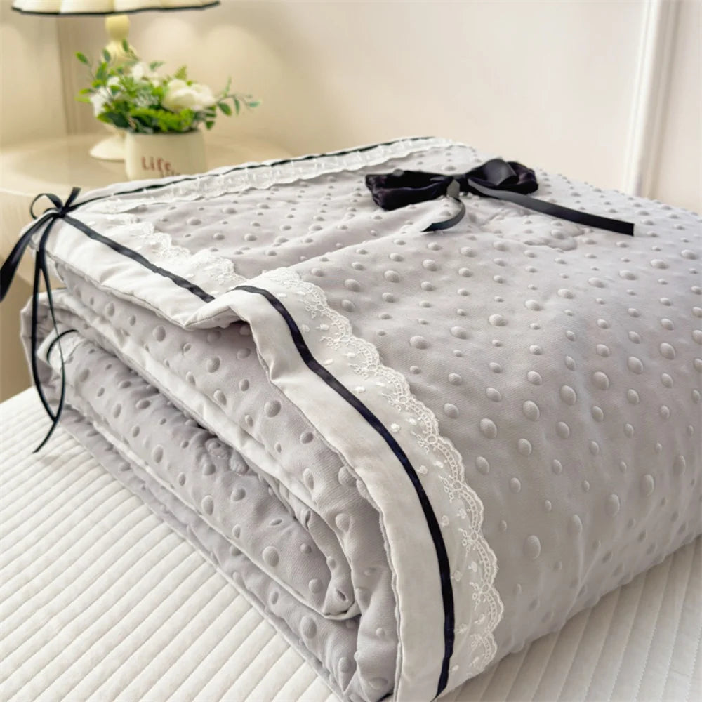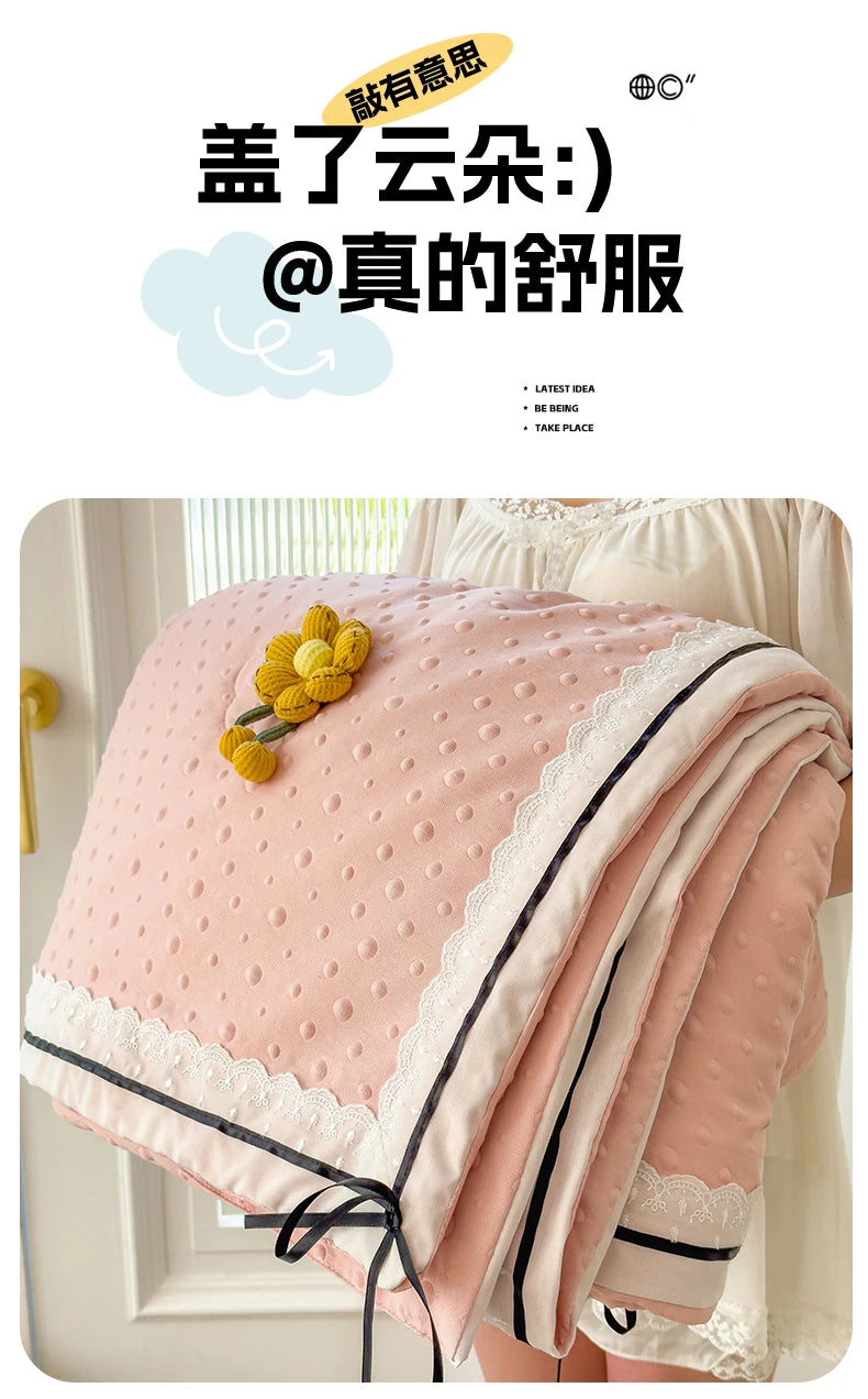 Ins Girl Bow Summer Thin Quilt Seersucker Washed Cotton Summer Quilt Single Dormitory Air Conditioner Blanket Machine Washable