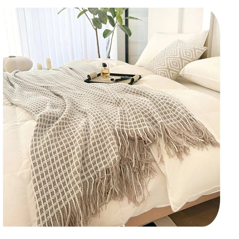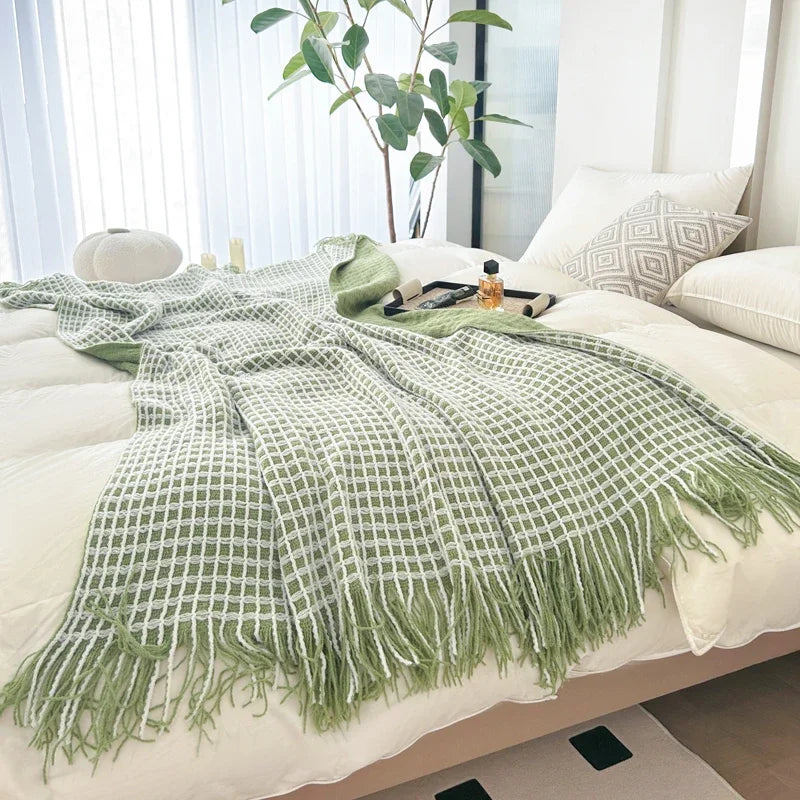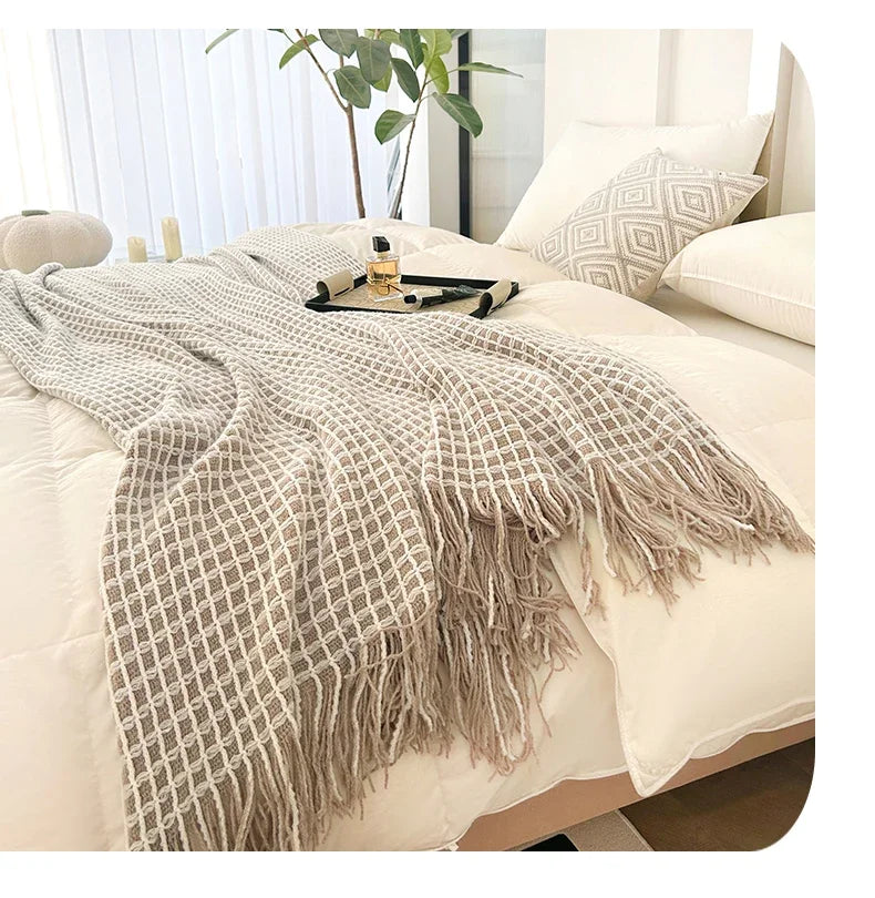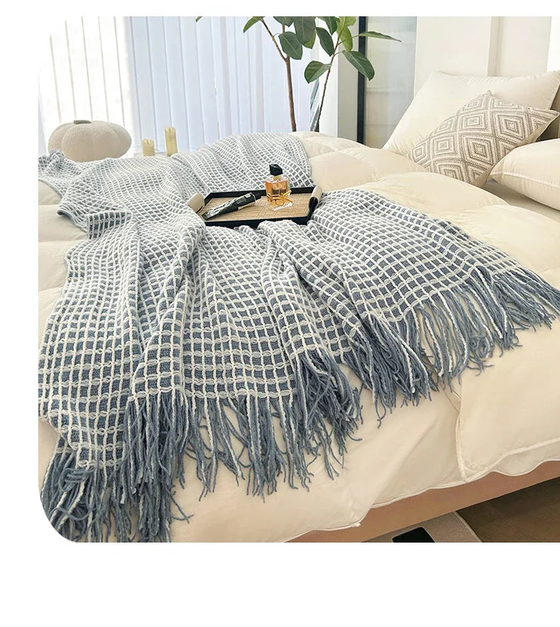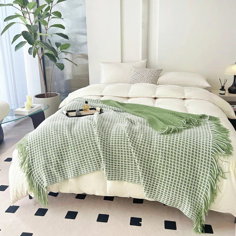 Modern Plaid Tassels Bed Flag Bed Tail Scarf Runner Upscale Household Bedroom Hotel Flag Bed End Towel End Blanket