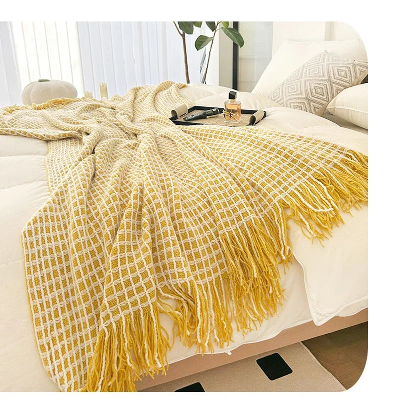 Modern Plaid Tassels Bed Flag Bed Tail Scarf  Runner Upscale Household Bedroom Hotel  Flag Bed End Towel  End Blanket