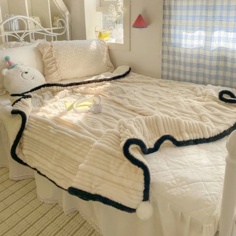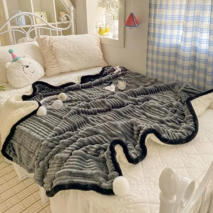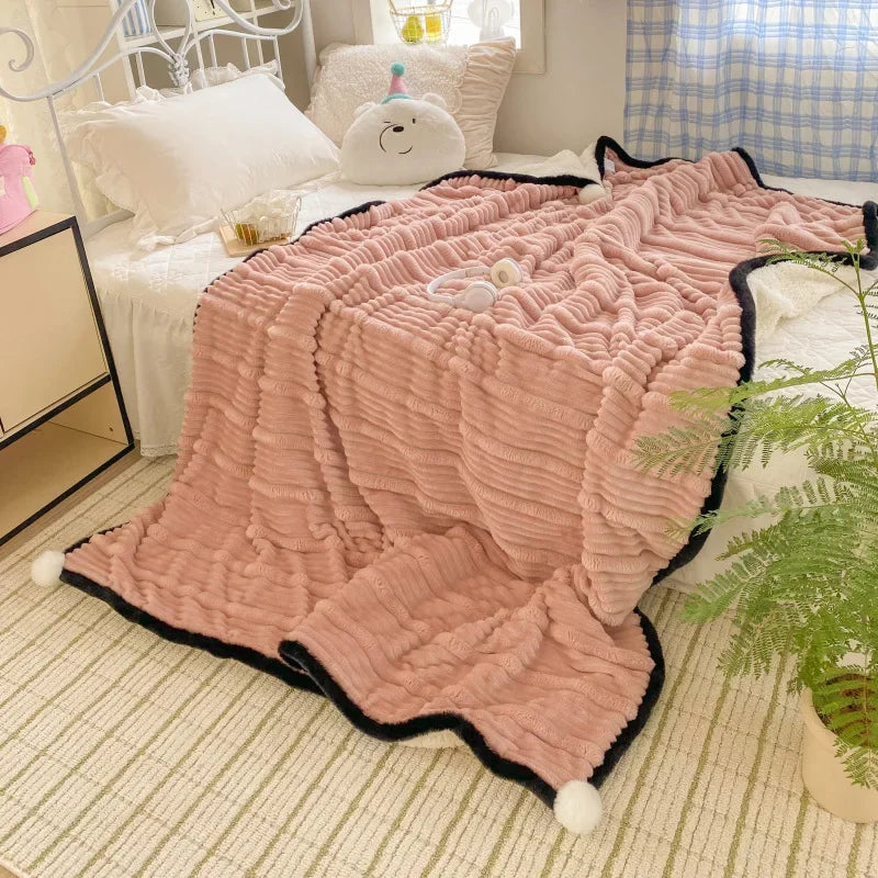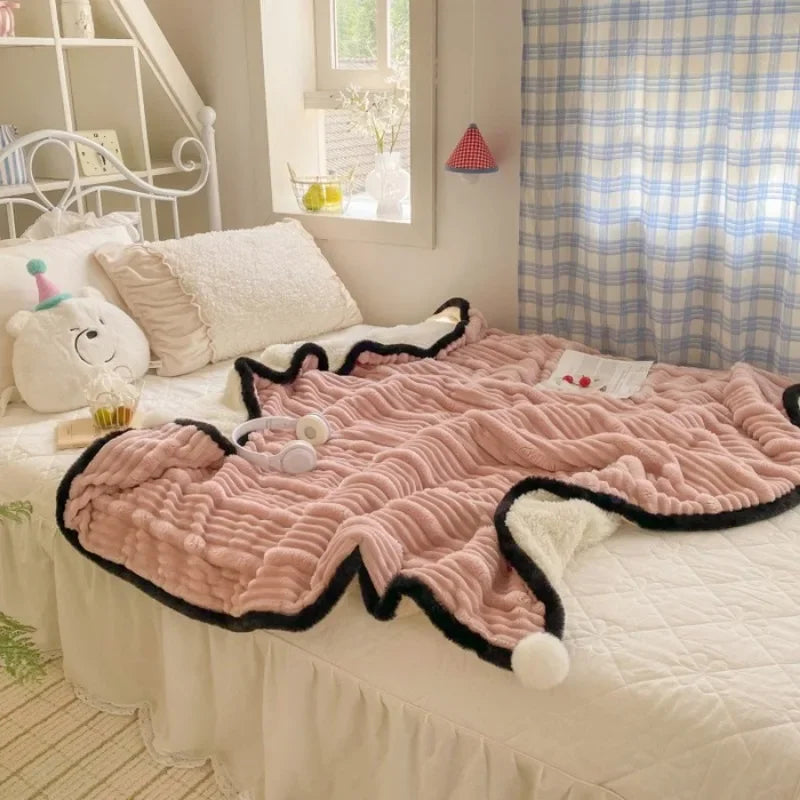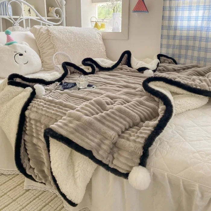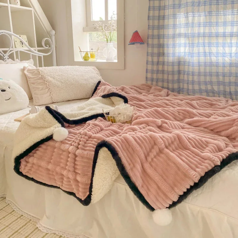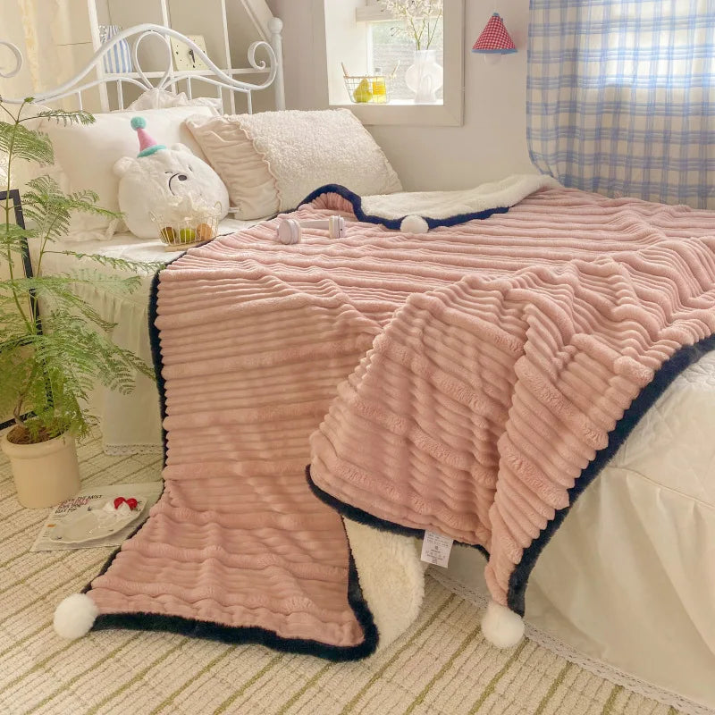 new autumn and winter mother draw lamb fleece ball blanket office nap thickened small blanket airplane blanket