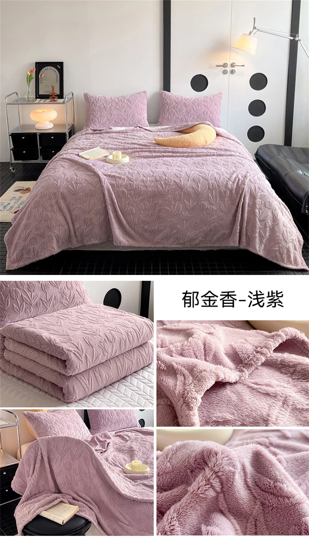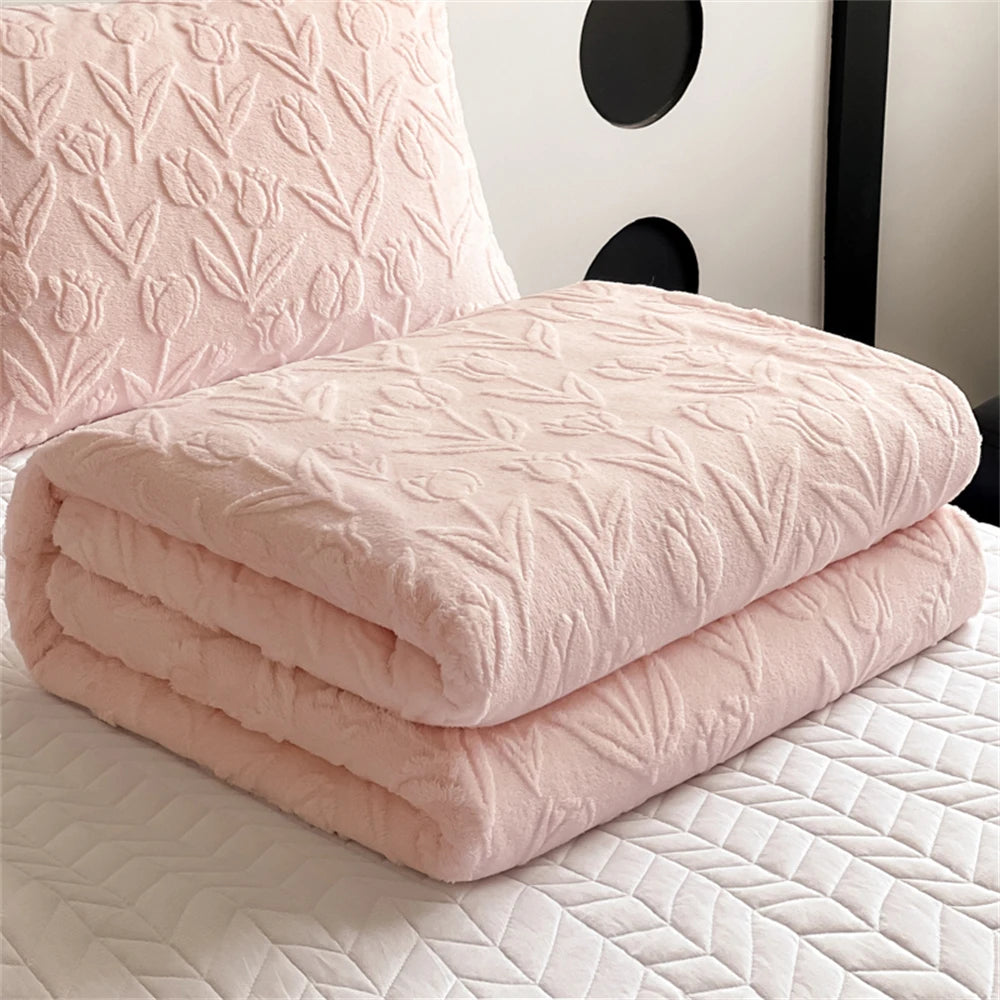 Pink Tulip Jacquard Blanket Flower Gifts for Girls Women Floral Throw Blankets Soft Warm Cozy Fleece Blanket for Couch Sofa Bed