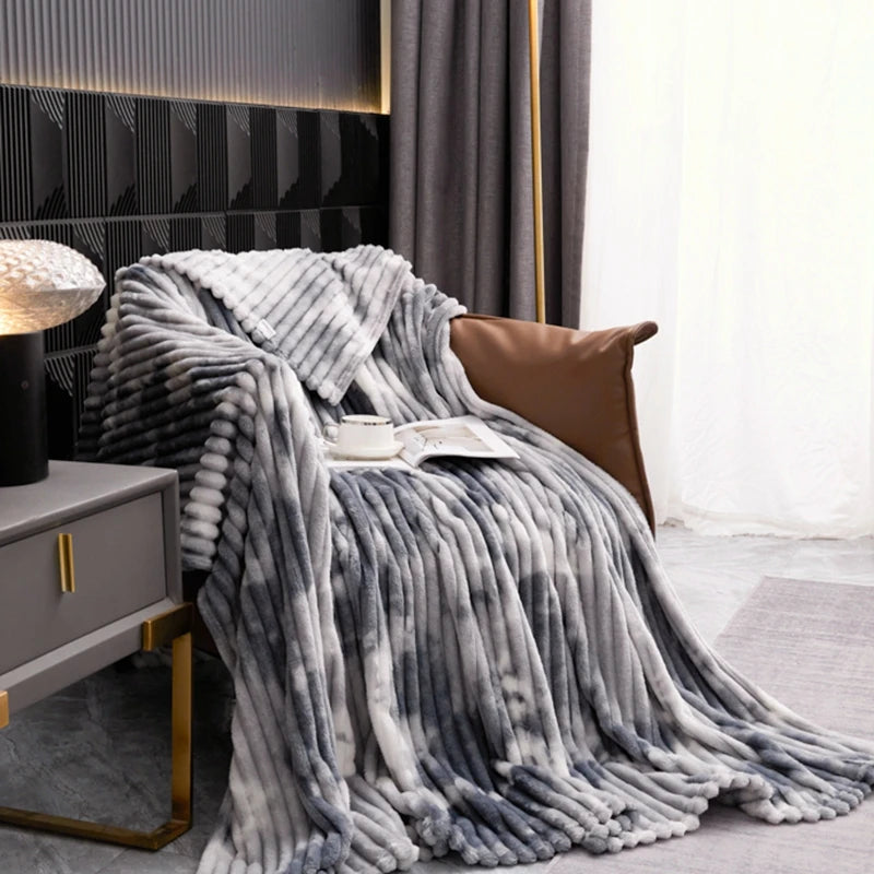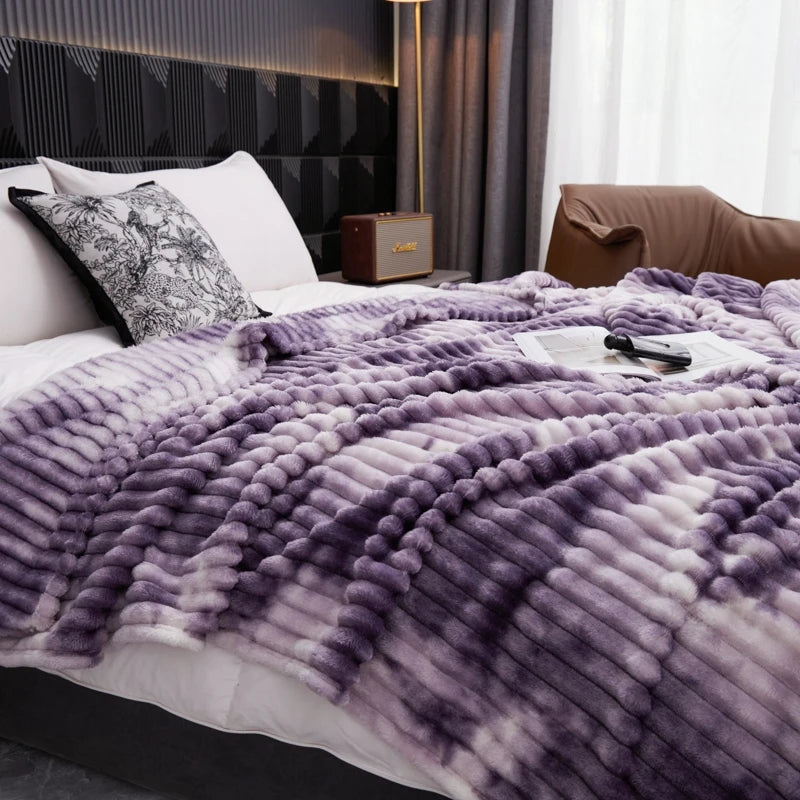 Purple Blanket for Winter Tie Dyeing Warm manta Single/Queen/King High Quality 300gsm Plaids for Sofa Thow Blanket