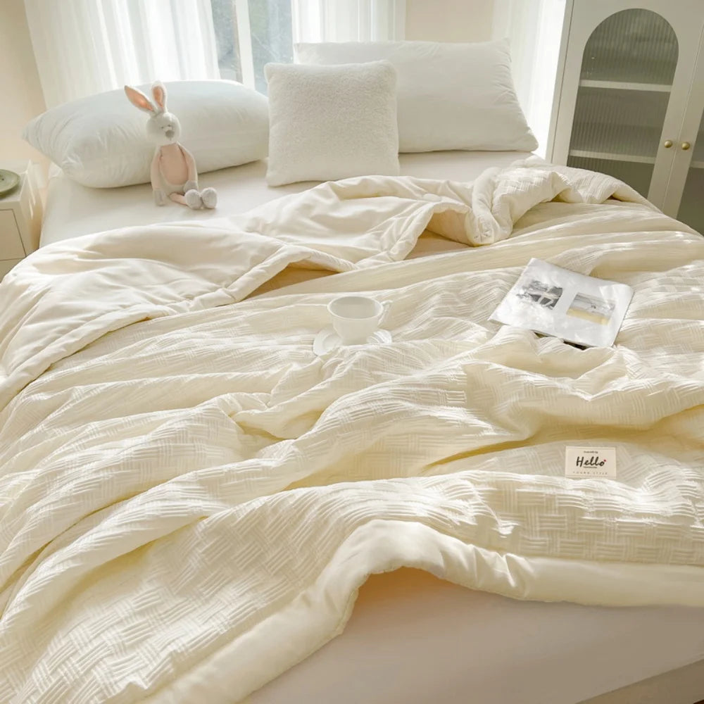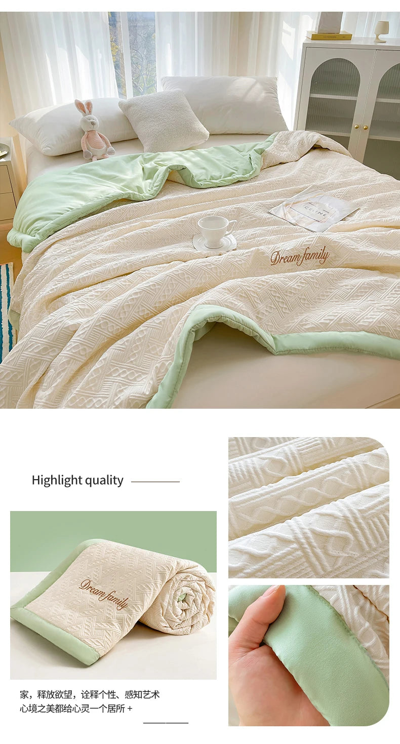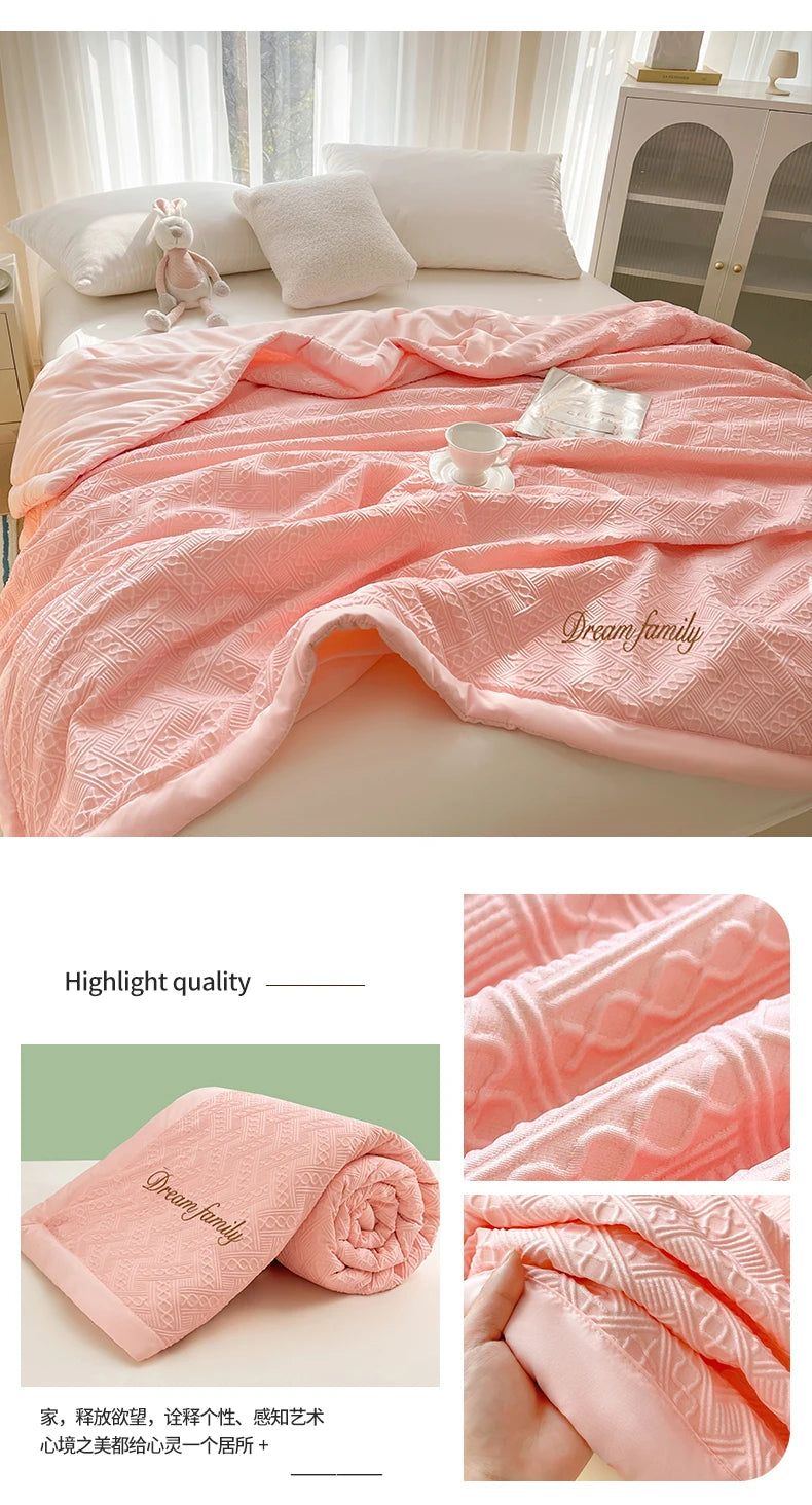 Simple Waffle Blanket Home Summer Quilt Cooling Blanket Nap Air Conditioner Student Dormi Single Double Green Pink Throw Blanket