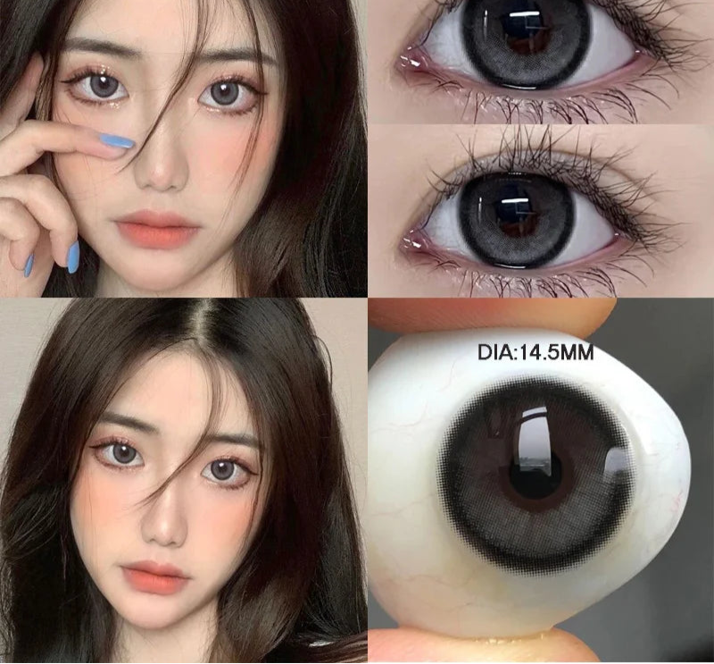 1Pair Colored Beauty pupils Makeup Lenses  High Quality Myopia Eyes Black Eye Grey Contact Lenses 1 Yearly