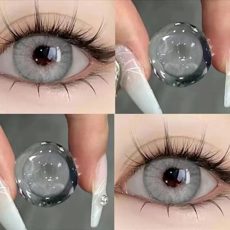 1Pair Soft Contact Lenses Grey Lenses Blue Eye Diameter 14.5mm 14.2mm 14.0mm Grey Lens Myopia Degree Beautiful Pupil