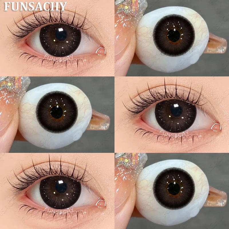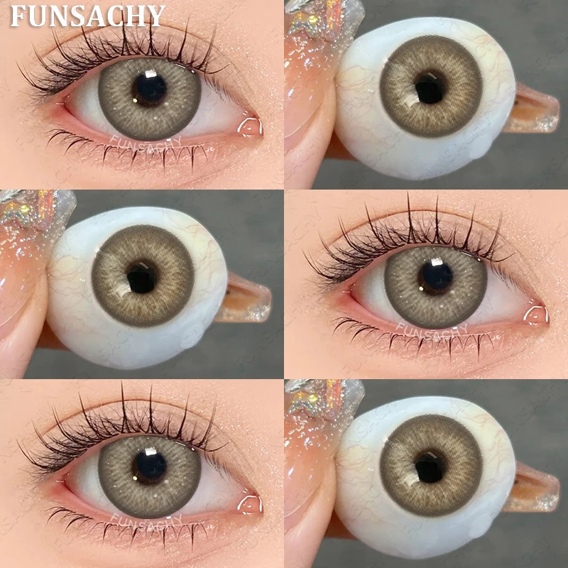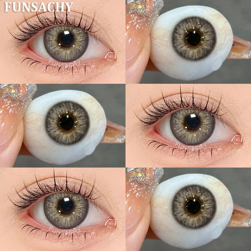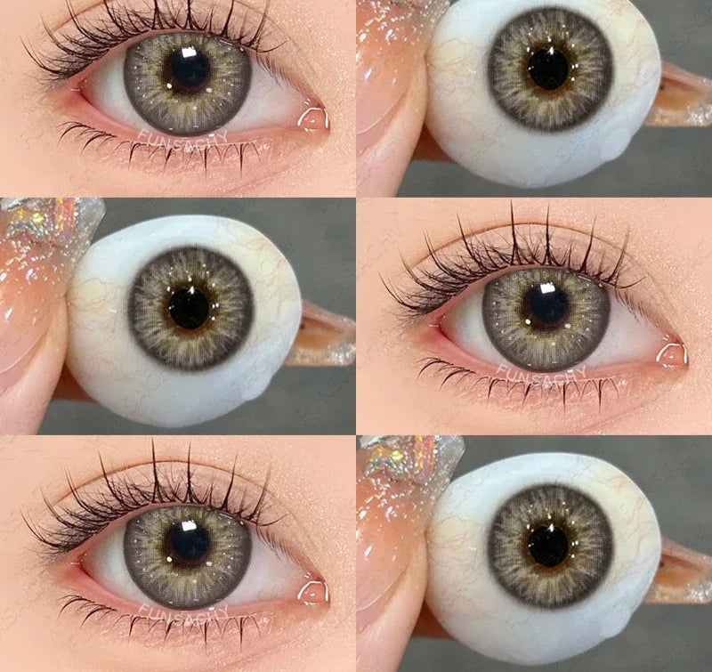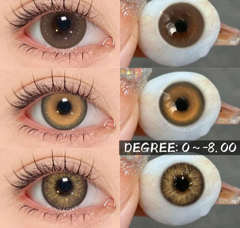 1Pair 0~-8.00 Myopia Lenses Brown Color Contact Lenses with Prescription Gray Beautiful Pupil Contact Lens with Degree
