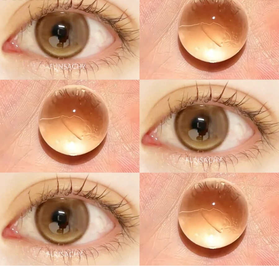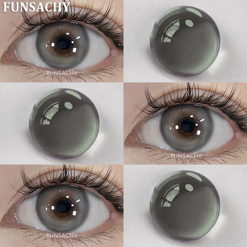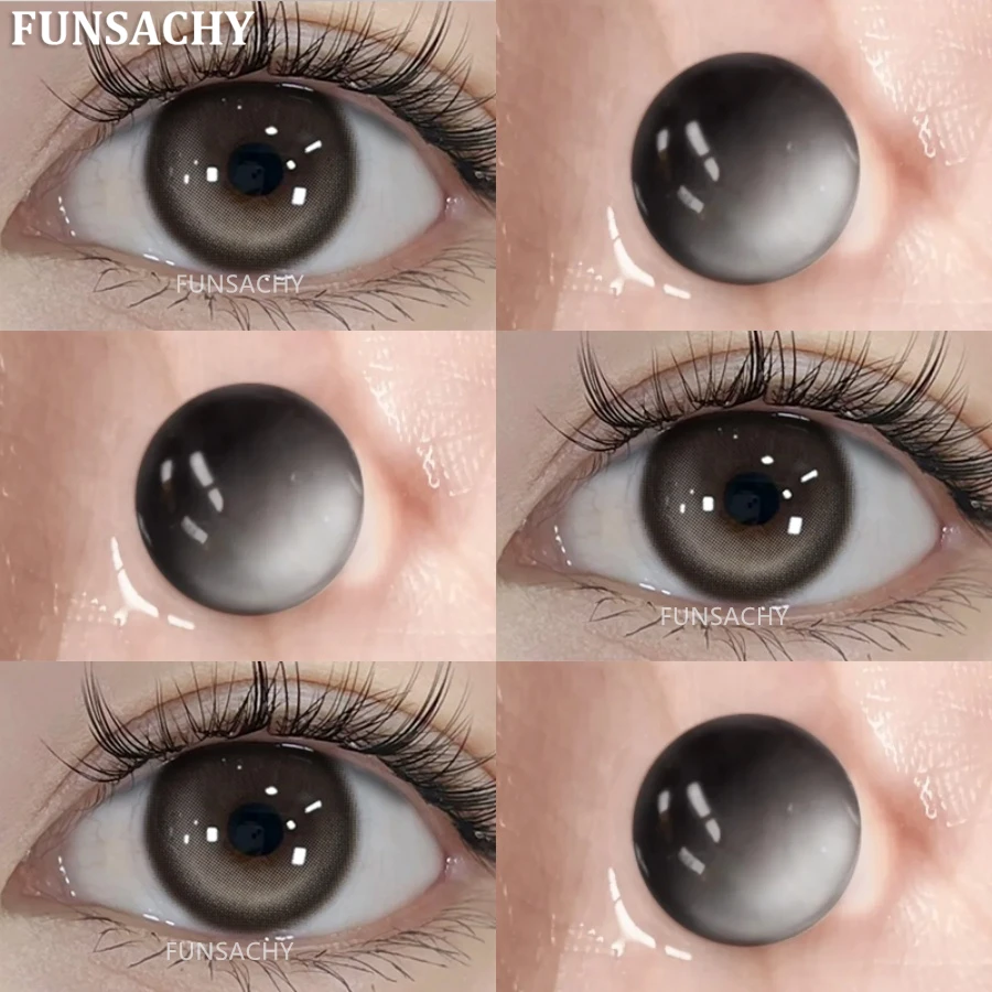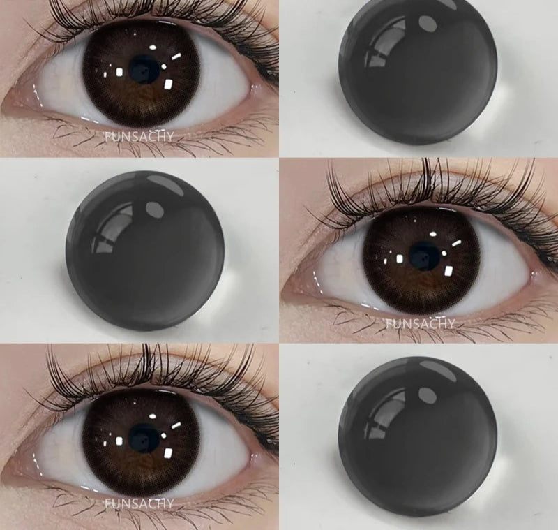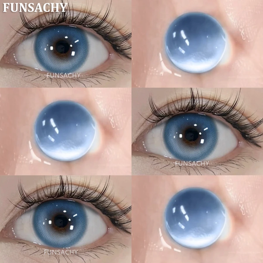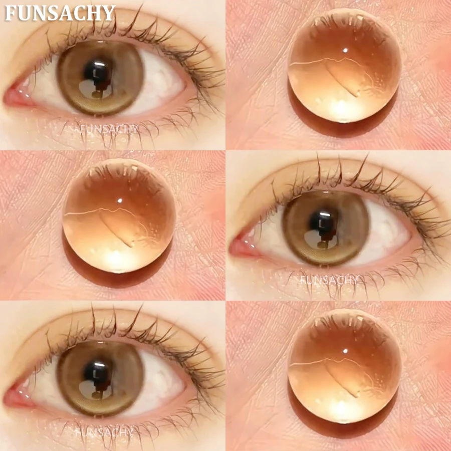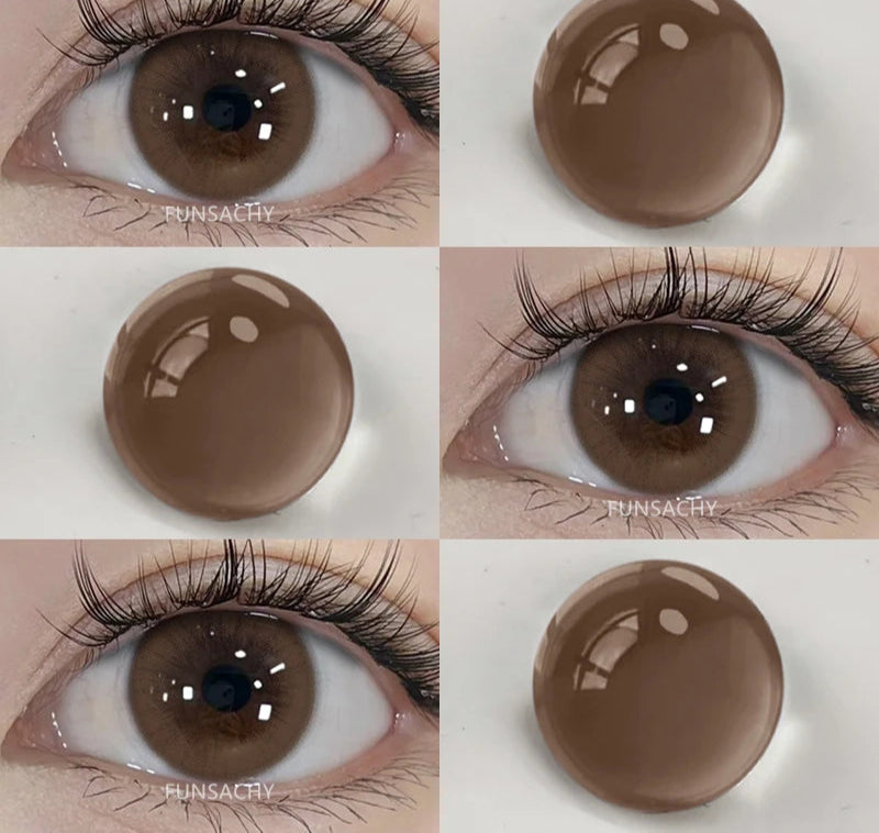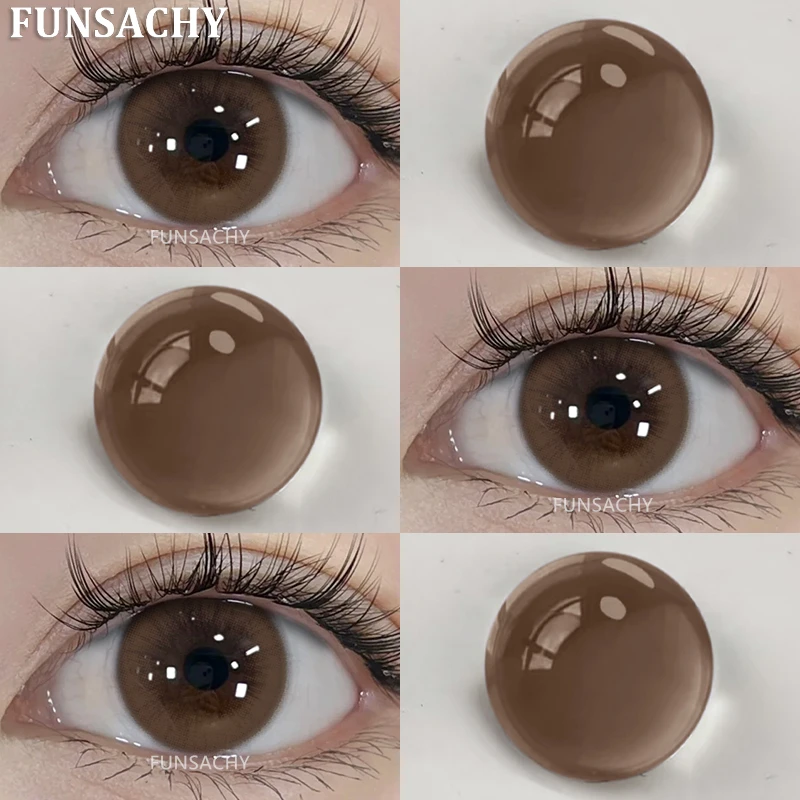 FUNSACHY2pcs Brown Colored Contacts Lenses with Myopia 0~-8.00 Degree Yearly Beauty Cosmetic Makeup Pupils 14.5mm Blue Eye Lens