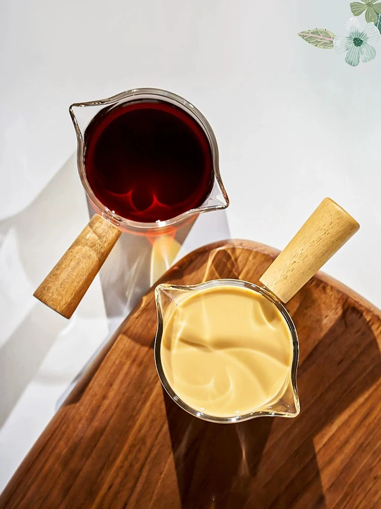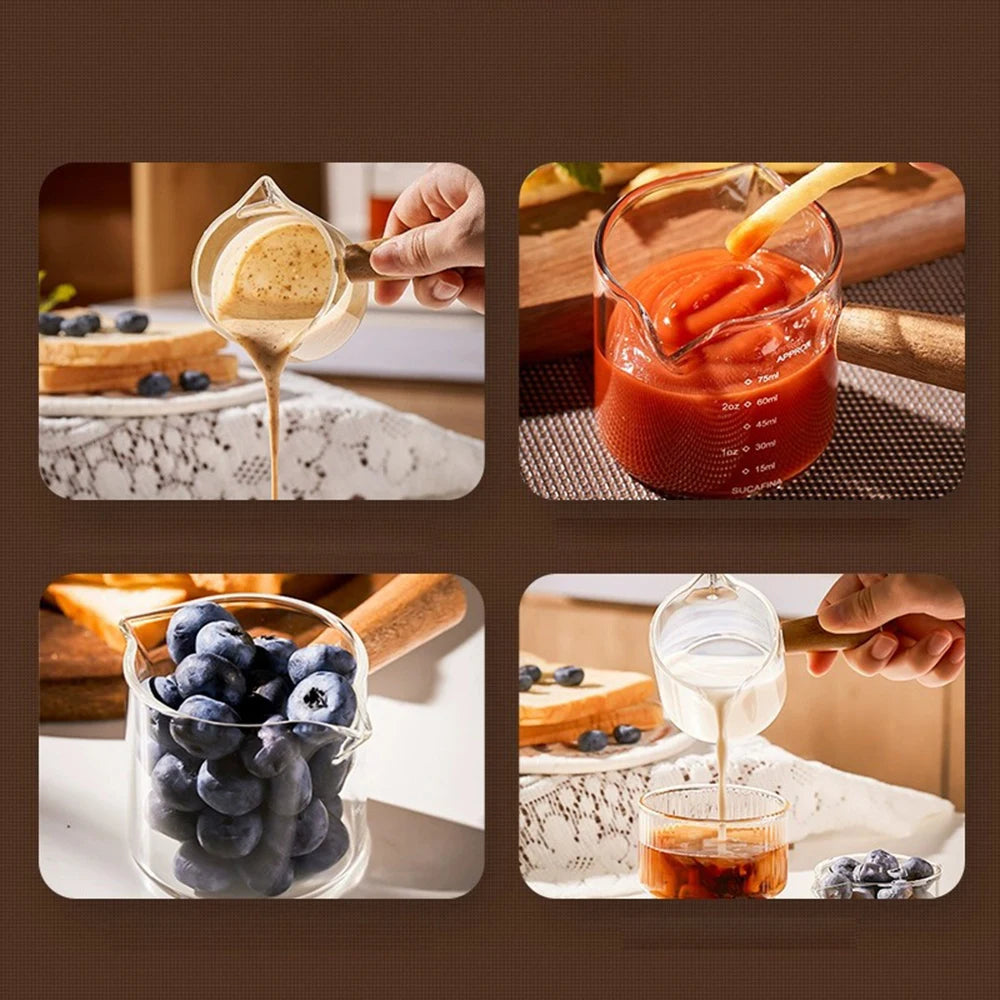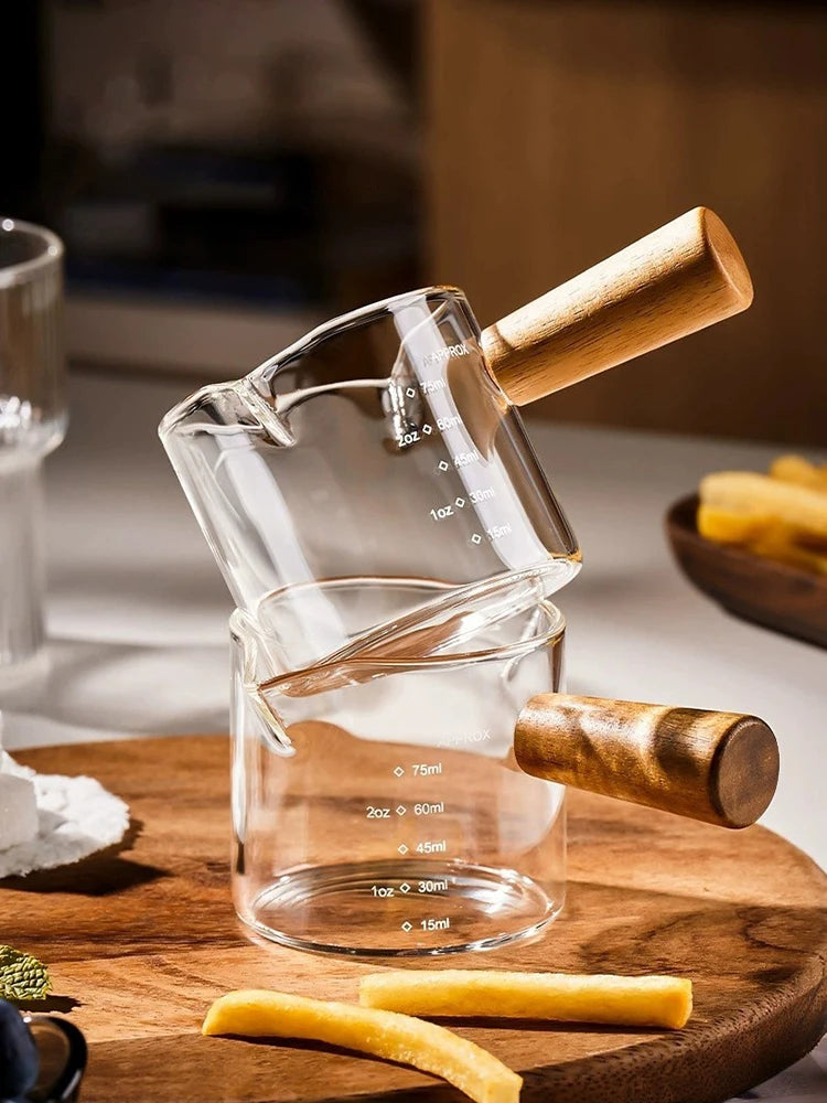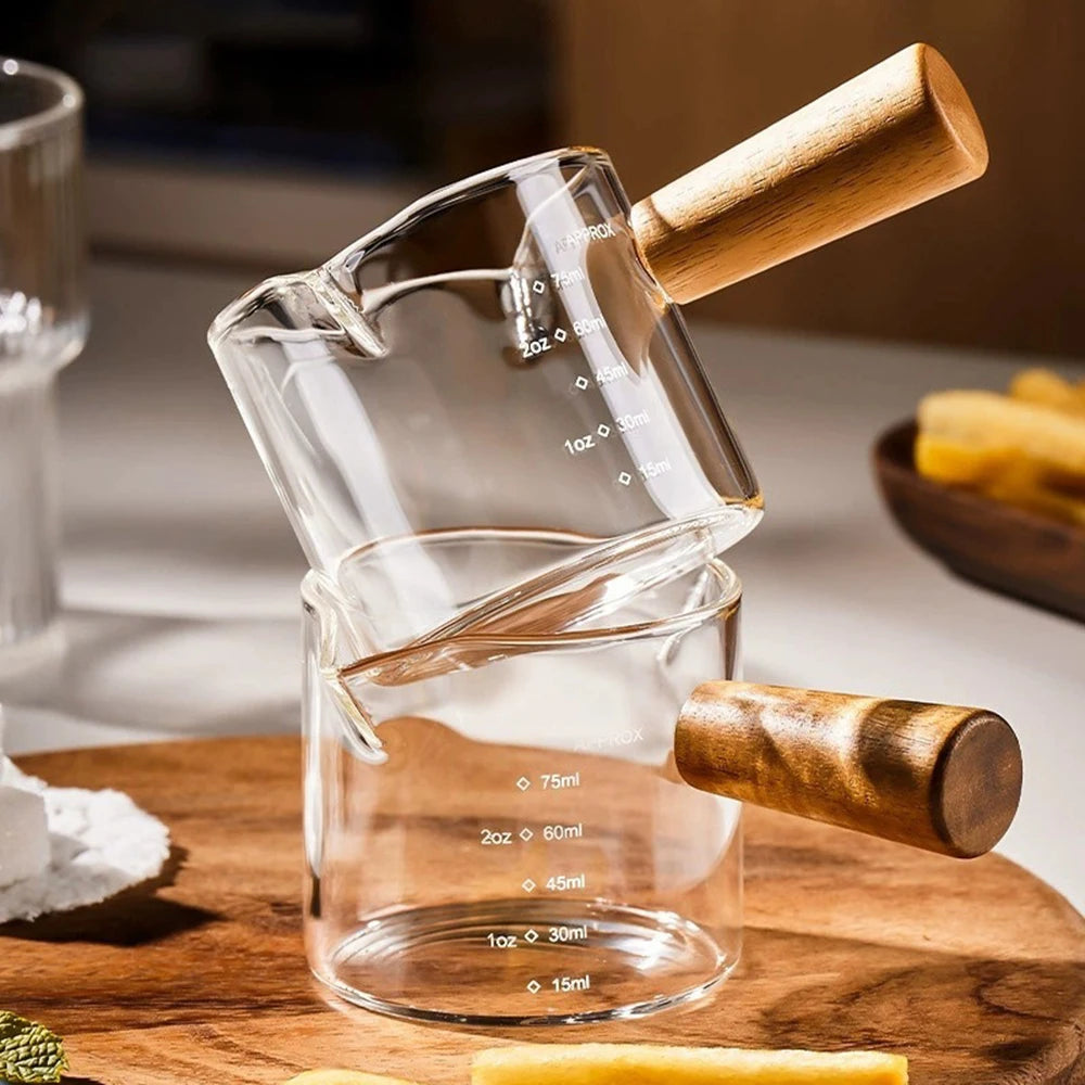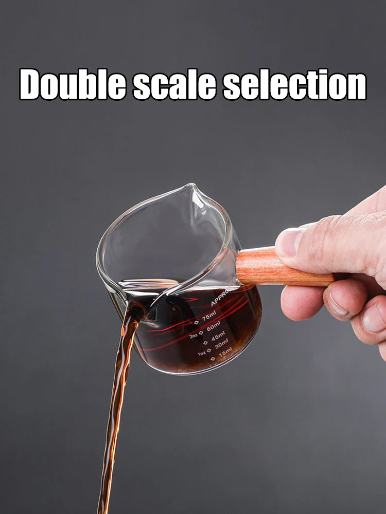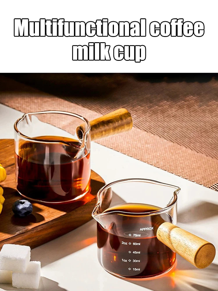 1 Piece 75ml Double Mouth Milk Cup With Side Wooden Handle Clear Glass Coffee Cup, Suitable For Home Espresso, Milk Production