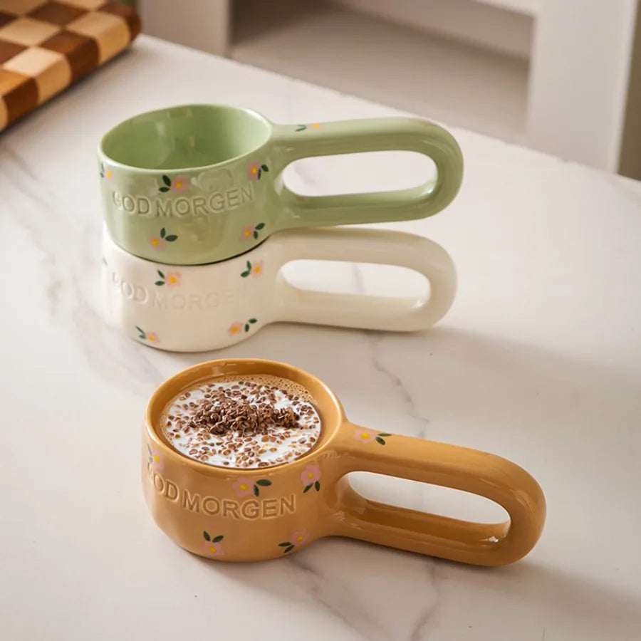 200ml Long Handled Ceramic Cup for Home Use Heat-resistant Breakfast Oatmeal Coffee Cup Handmade Milk Cup Kitchen Accessories