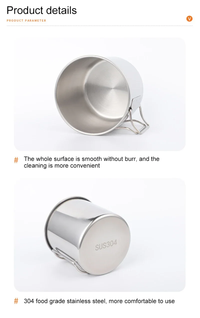 250/350/500ML Camping Cup Portable Carabiner S Outdoor Water Mug with Foldable Handle Kitchen DrinkwareStainless Steel