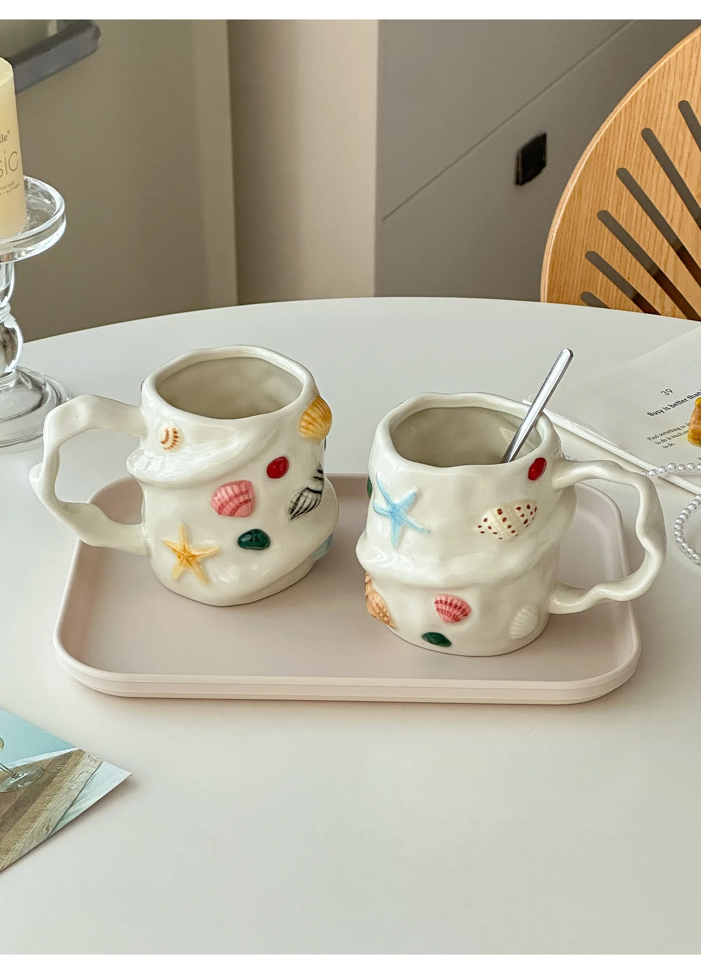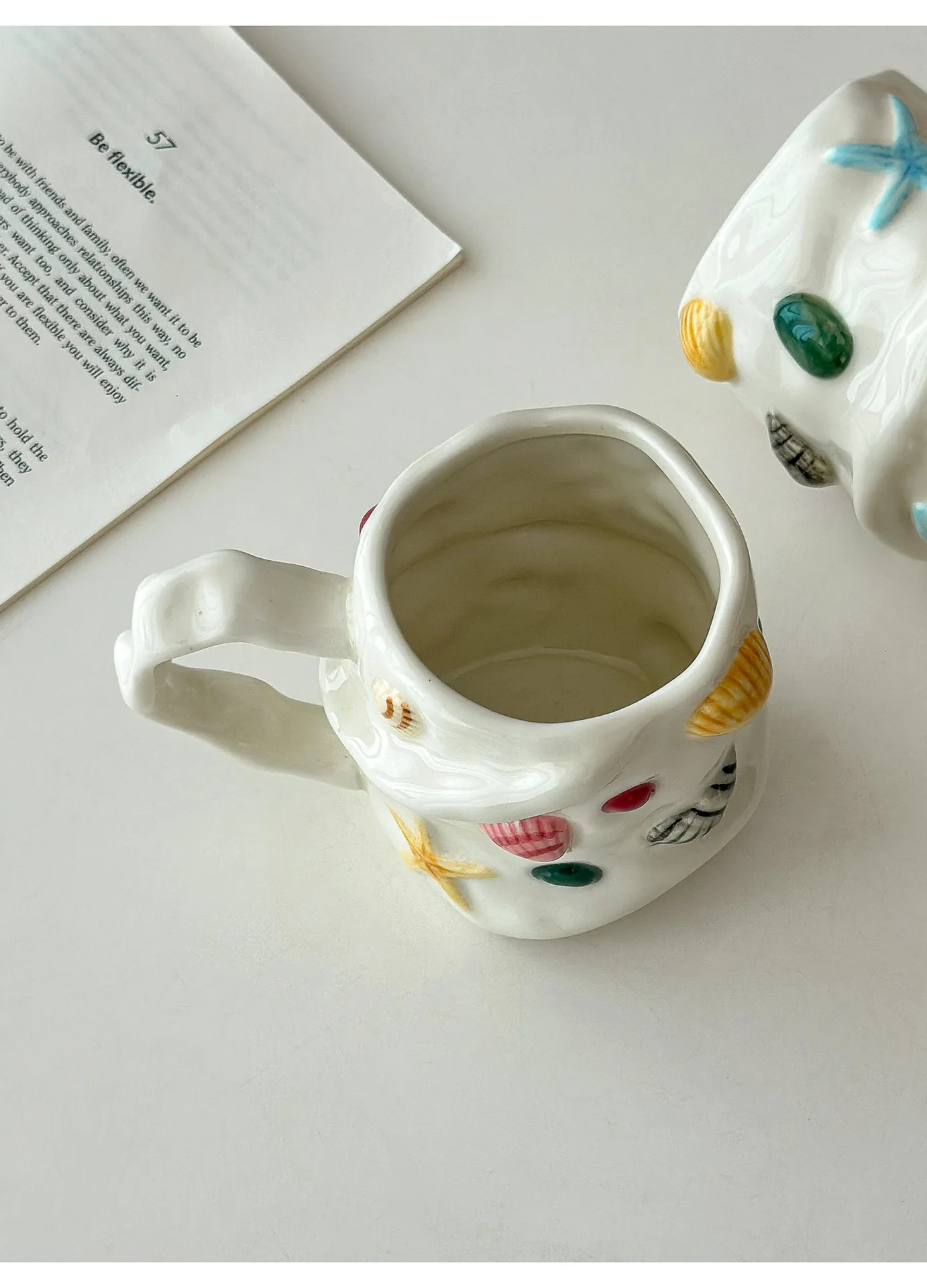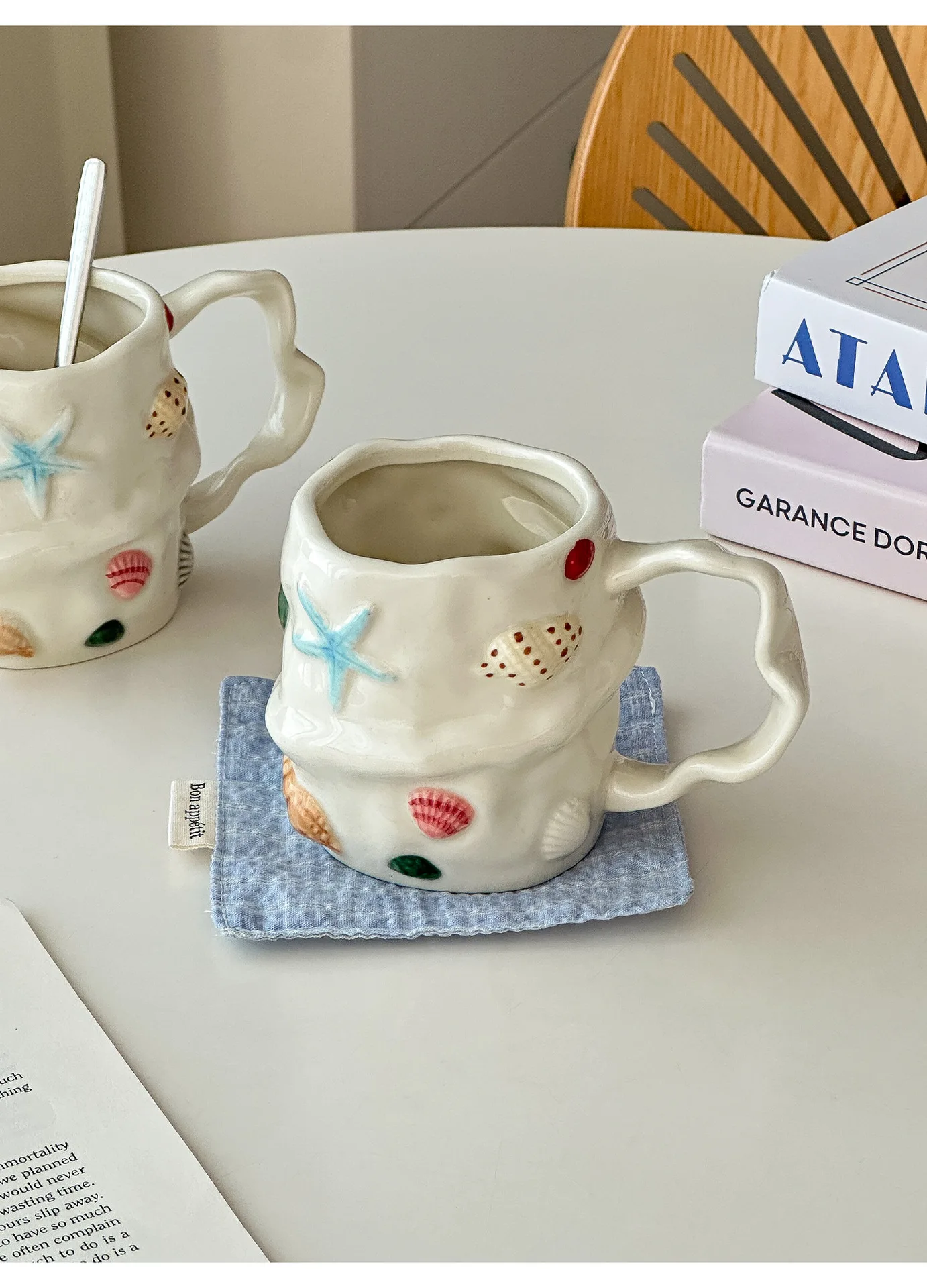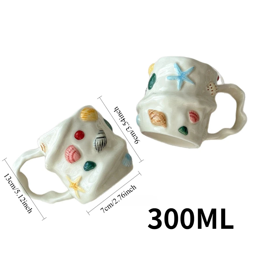 300ml Milk Cup Seashell Ceramic Mug Ocean Themed 3D Coffee Cup Cute Gift for Women/Men Handmade Festival Gift Kitchen Accessorie