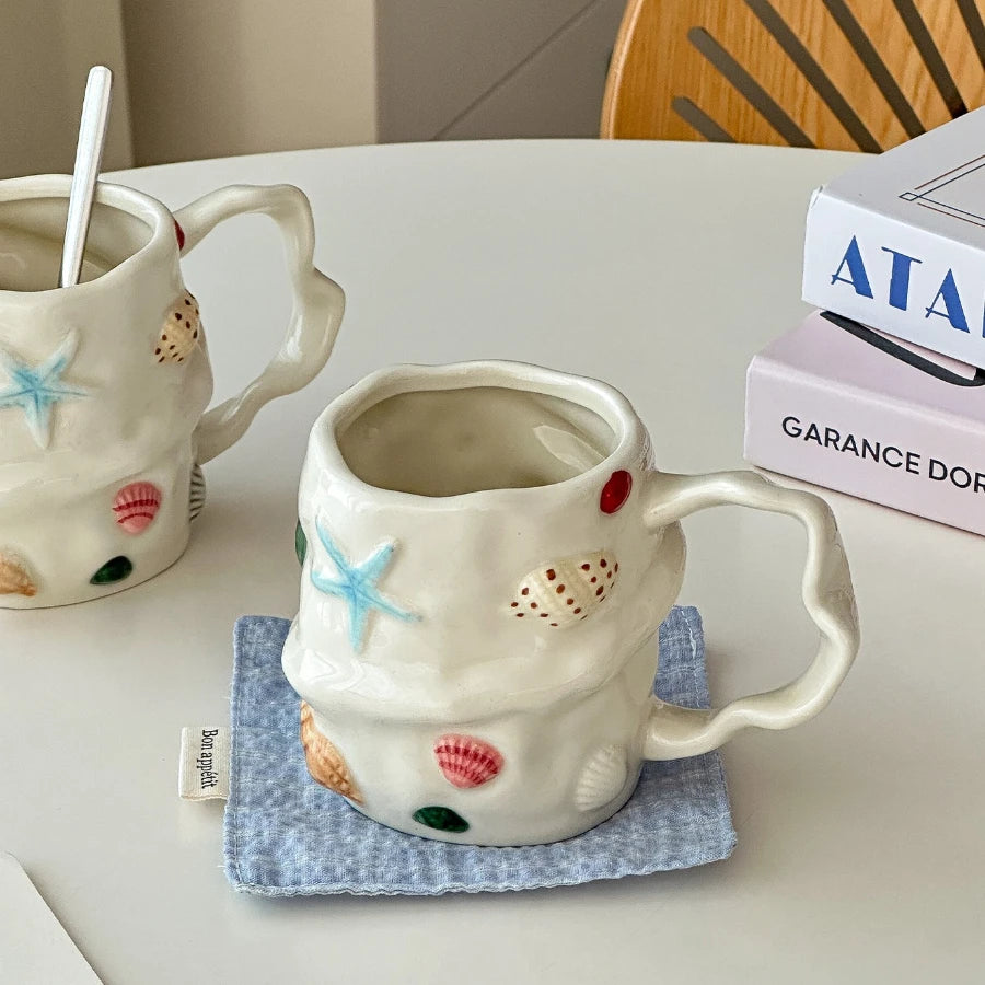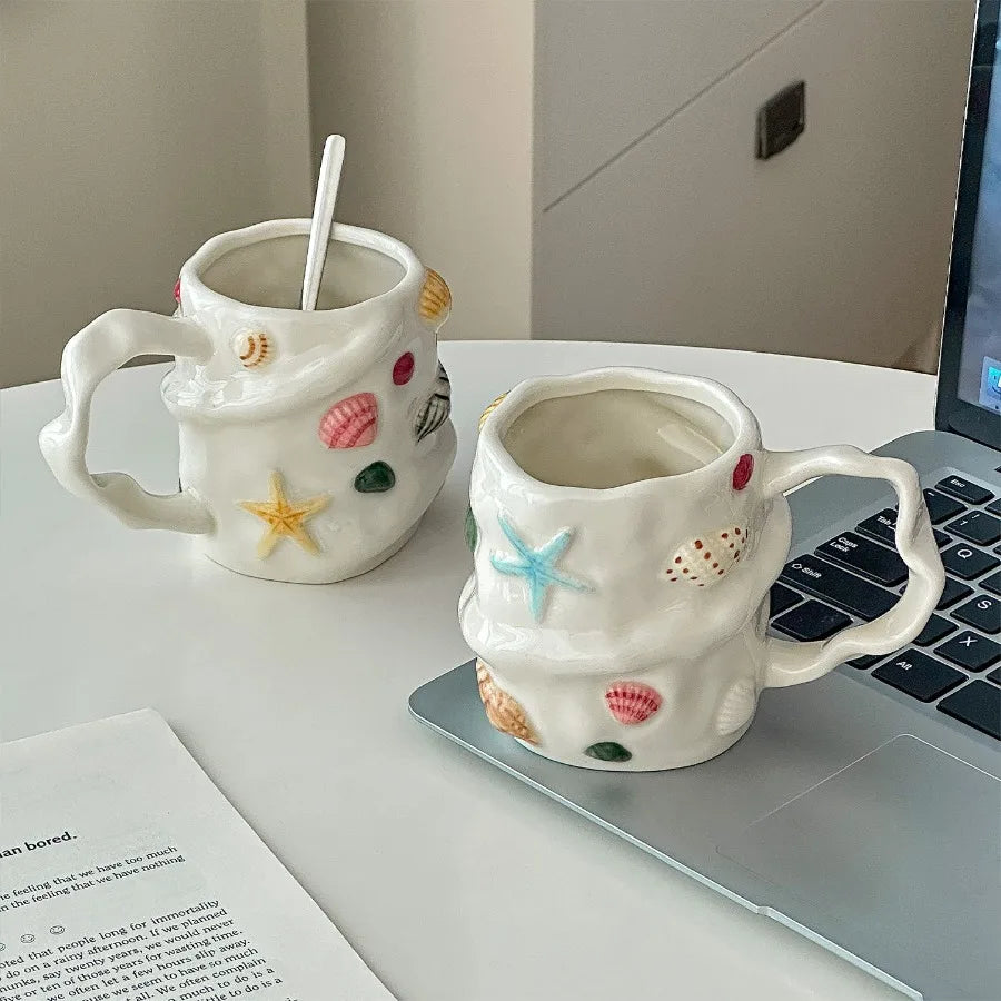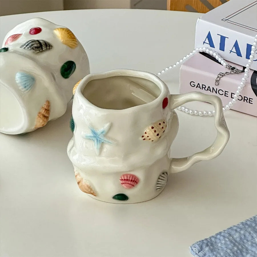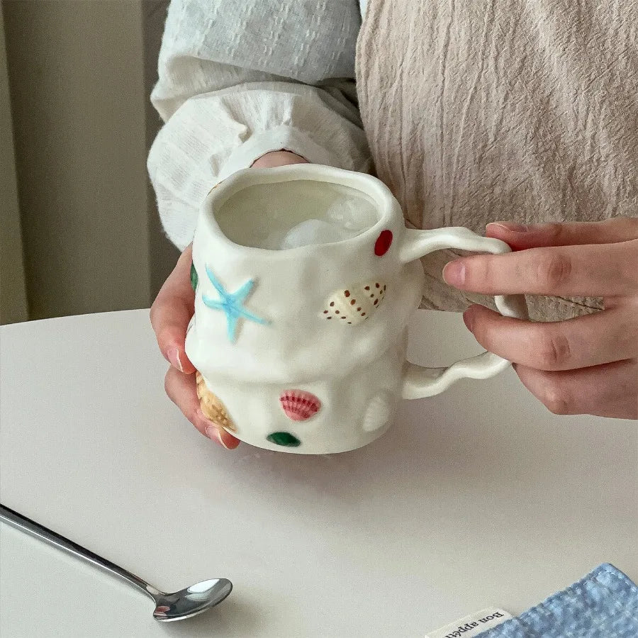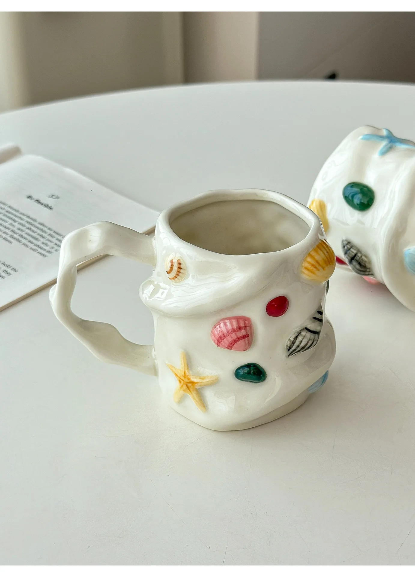 300ml Milk Cup Seashell Ceramic Mug Ocean Themed 3D Coffee Cup Cute Gift for Women/Men Handmade Festival Gift Kitchen Accessorie