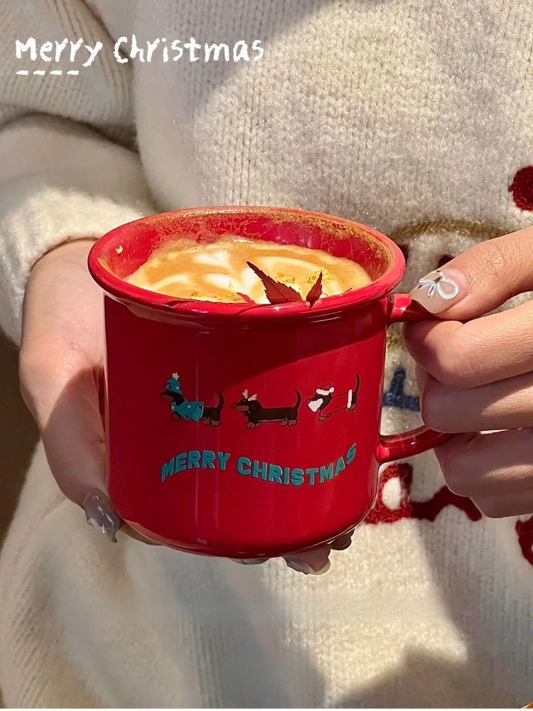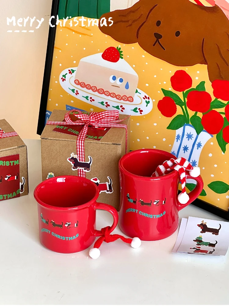 Original Christmas Sausage Dog Ceramic Mug Cute Cartoon Little Red Cup Girl Giving Gift Coffee Cup